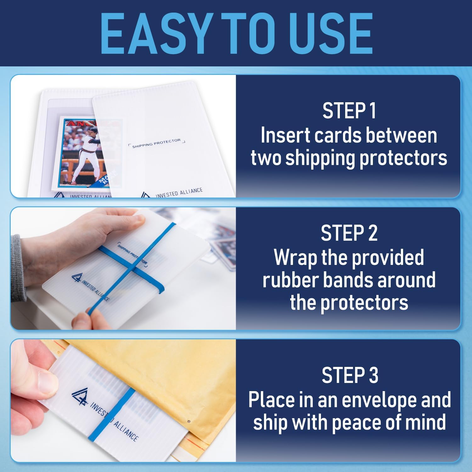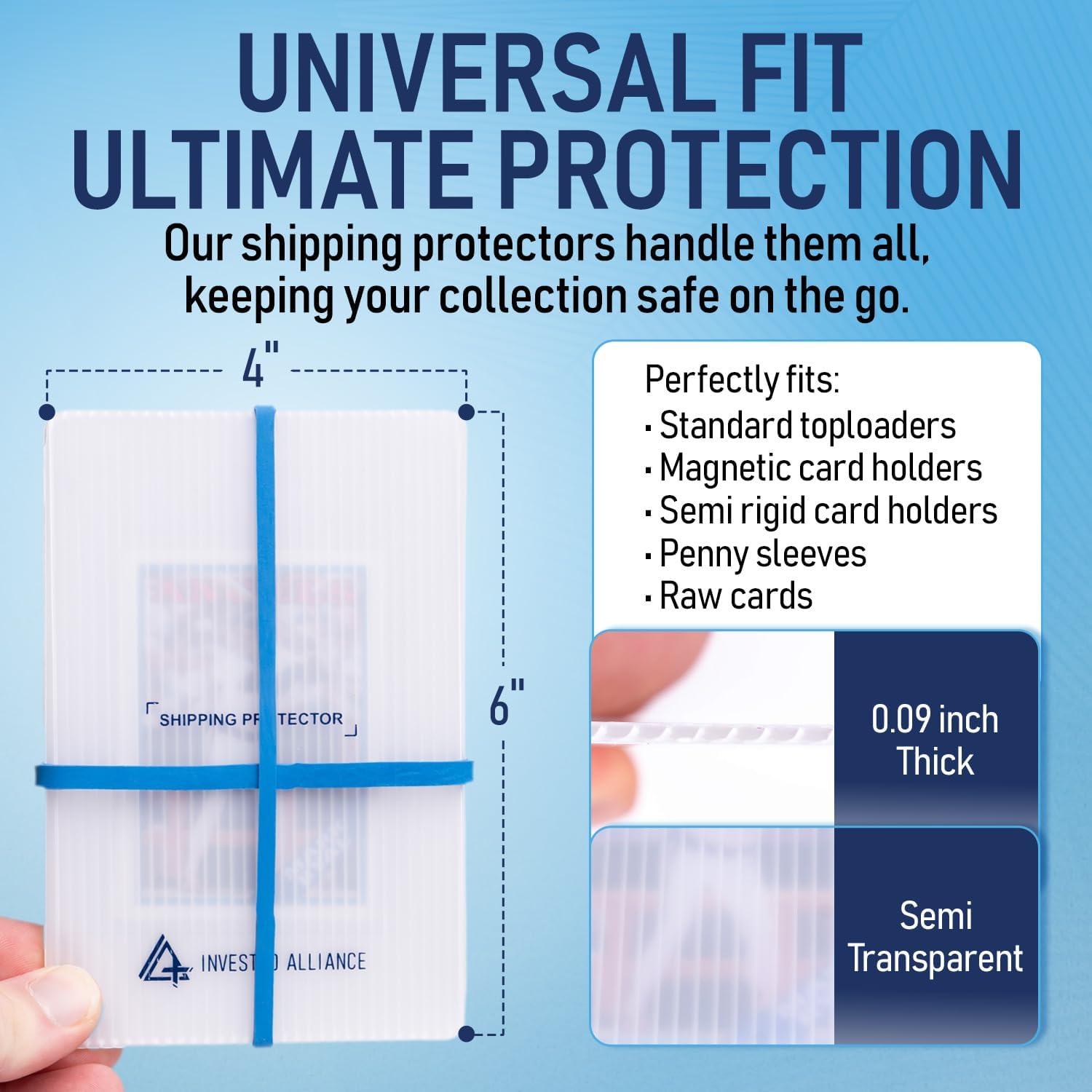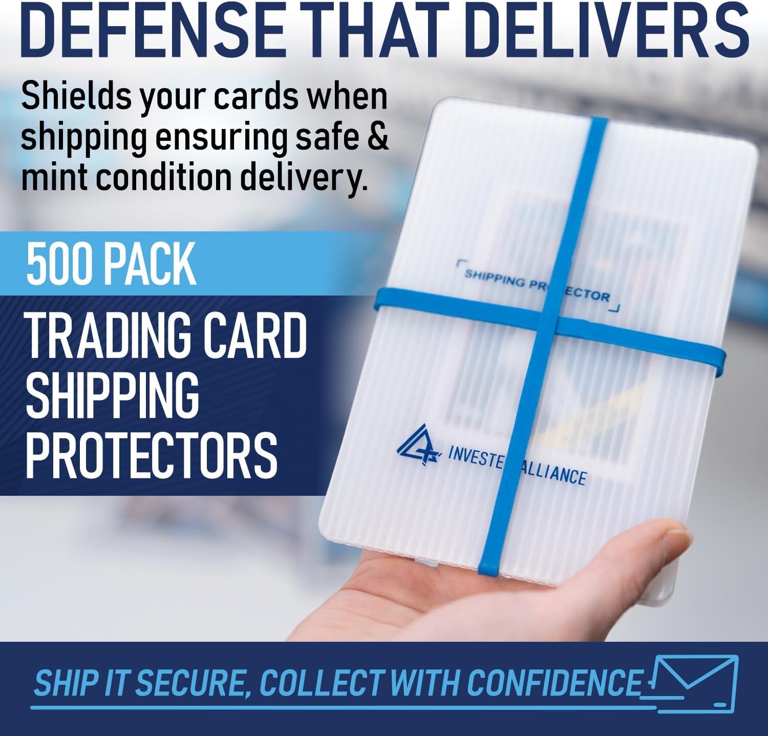 Upgrade your TCG shipping supplies by combining the Invested Alliance card shipping kit, it even pairs perfectly with other trading card shipping envelopes. Keep your valuable trading cards safe and secure during transit with our premium Card Shipping Protector for Trading Cards. Designed with collectors in mind, these protectors offer optimal protection to prevent bending, scratches, and other damage while your cards are on their way to their destination, the ultimate ding defender. These shipping shields are superior to other cardboard card protectors or cardboard sleeves because of their sturdiness and reusability.