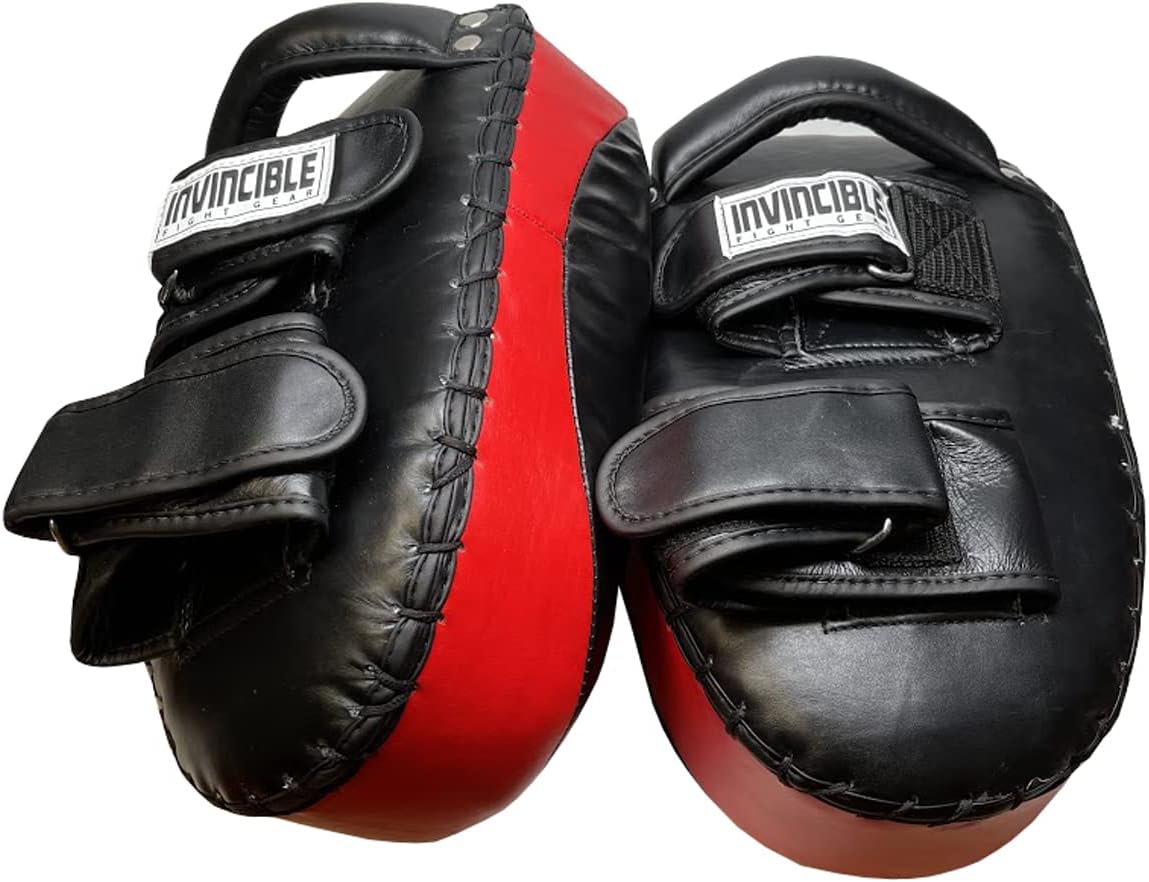 Enhance your training with our Premium Leather Thai Pads, expertly crafted for superior durability and shock absorption. Built with 4" high-density foam padding, these strike shields effectively minimize impact from powerful kicks and punches, ensuring trainer comfort and safety. Designed for long-lasting use, they feature reinforced stitching, solid leather construction, and sturdy grommets, making them highly durable for rigorous workouts. The ergonomically curved shape conforms naturally to the forearm, providing excellent grip and control. A solid handle and dual extra-wide hook and loop wrist straps ensure a secure, non-slip fit, offering optimal stability during training. Despite their tough build, these pads are lightweight, allowing for easy maneuverability and extended use. Perfect for kickboxing, Muay Thai, MMA, and general combat sports, these versatile training pads are a must-have for fighters and trainers alike.