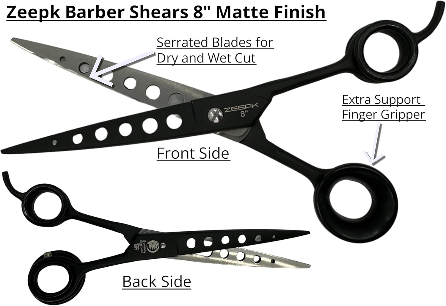 Our Professional Barber Shears Set Includes a 8 inch hair cutting shears with Barber Shaving Razor, Perfect for Achieving precise cuts and styles. Made from German Stainless Steel, these shears are durable and long-lasting. The ergonomic design ensures comfortable use for extended periods of time. Ideal for both salon barbershops and home use. This set is a must-have for any barber or hairdresser. Order Now and elevate your hair cutting game.