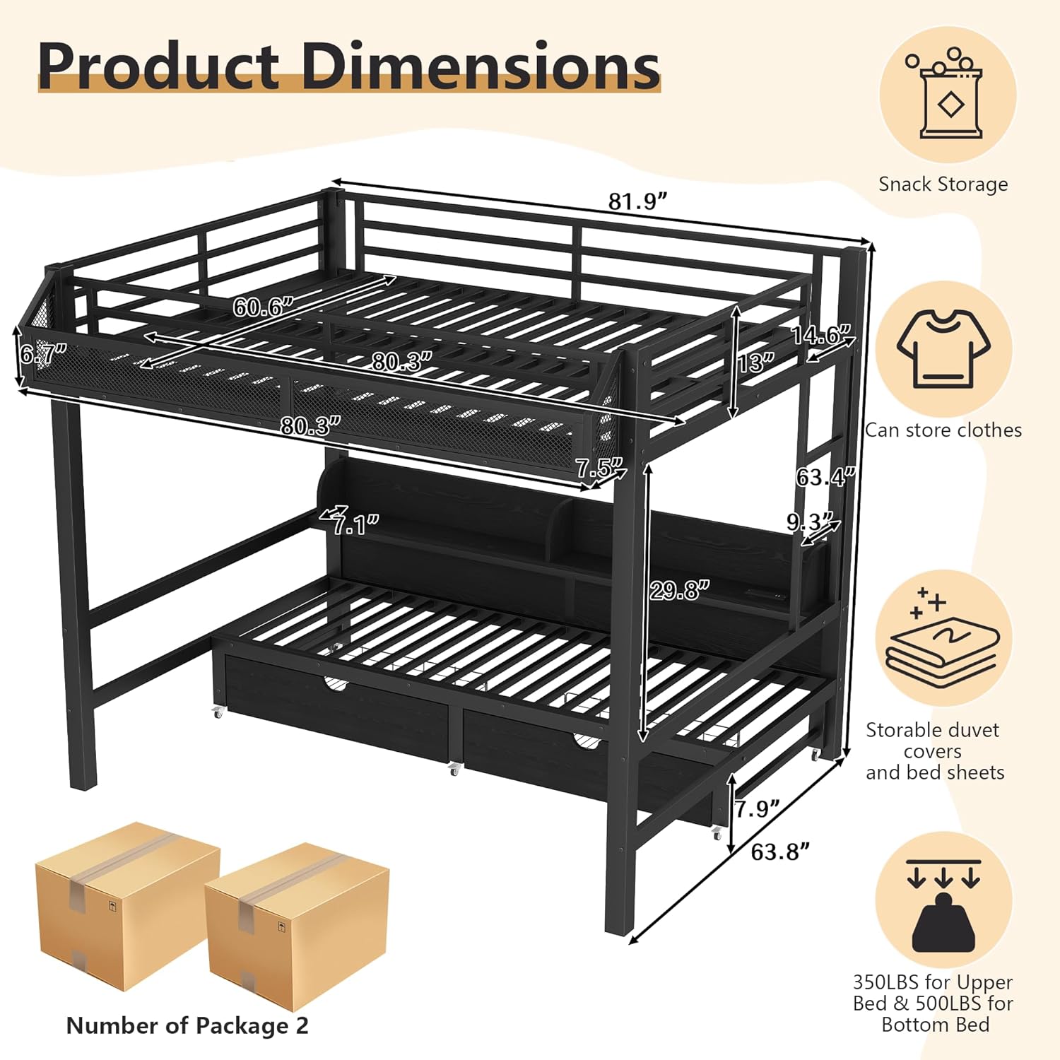 | Other Special Features of the Product | Convertible Lower Beds, No Box Spring Needed, Space Saving, Storage |