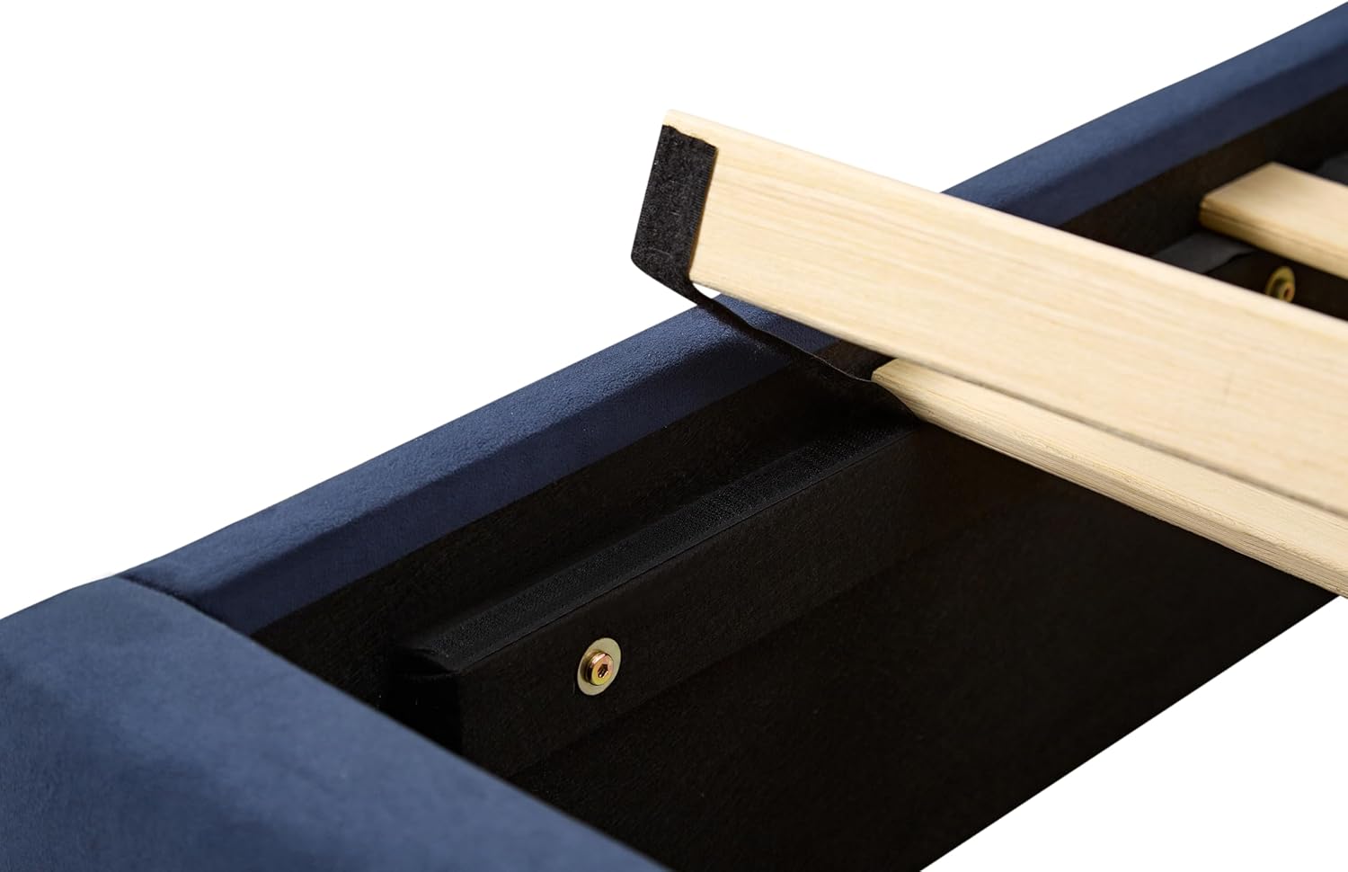 Elevate your bedroom with this queen platform bed frame with headboard, combining luxury and functionality. The velvet tufted bed frame features a plush wingback design in rich blue velvet, offering both style and comfort. Integrated LED nightstands provide adjustable lighting for convenience, while the heavy-duty metal frame (800 lb capacity) ensures lasting stability—no box spring needed. Easy to assemble in under an hour, this upholstered wingback bed supports all mattress types (8"-12" thick) and transforms your space into a modern retreat. Perfect for those seeking a blue bed frame queen that blends sophistication with durable construction