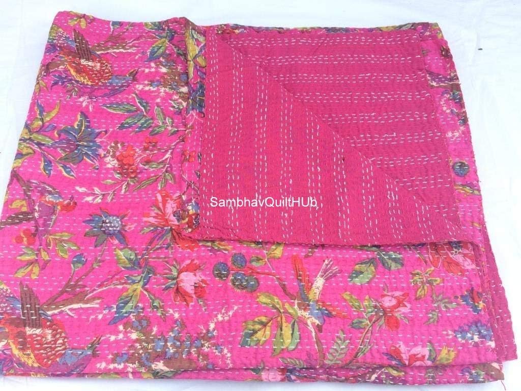 Made with 100% cotton and natural vegetable colors. This piece of art is completely hand stitched by Women artisan in Rajasthan, India. It can make any room alive with its vivid colors, stunning print,made using traditional and famous kantha hand method. Made from two thin layer of cotton fabric make this piece of art irresistible and also very comfortable. Adding to its style, this kantha quilt is reversible and both sides can be used. Kantha is still the most popular form of embroidery practiced by rural women. Typically use old saris and cloth and layer them with kantha stitch to make a light blanket, throw or bedspread. This cotton lightweight "Quilts" with a beautiful and colorful Bird design can be used as: 1. Bedspread, Bedding Throw, Blanket or Quilt 2. A Summer Bed Cover. 3. A Fabulous Picnic Rug 4. Nice Bedroom Quilt. Size Twin (60X90), Queen Size (90X108 inch), King Size (108X108) inch
