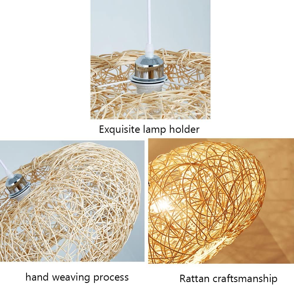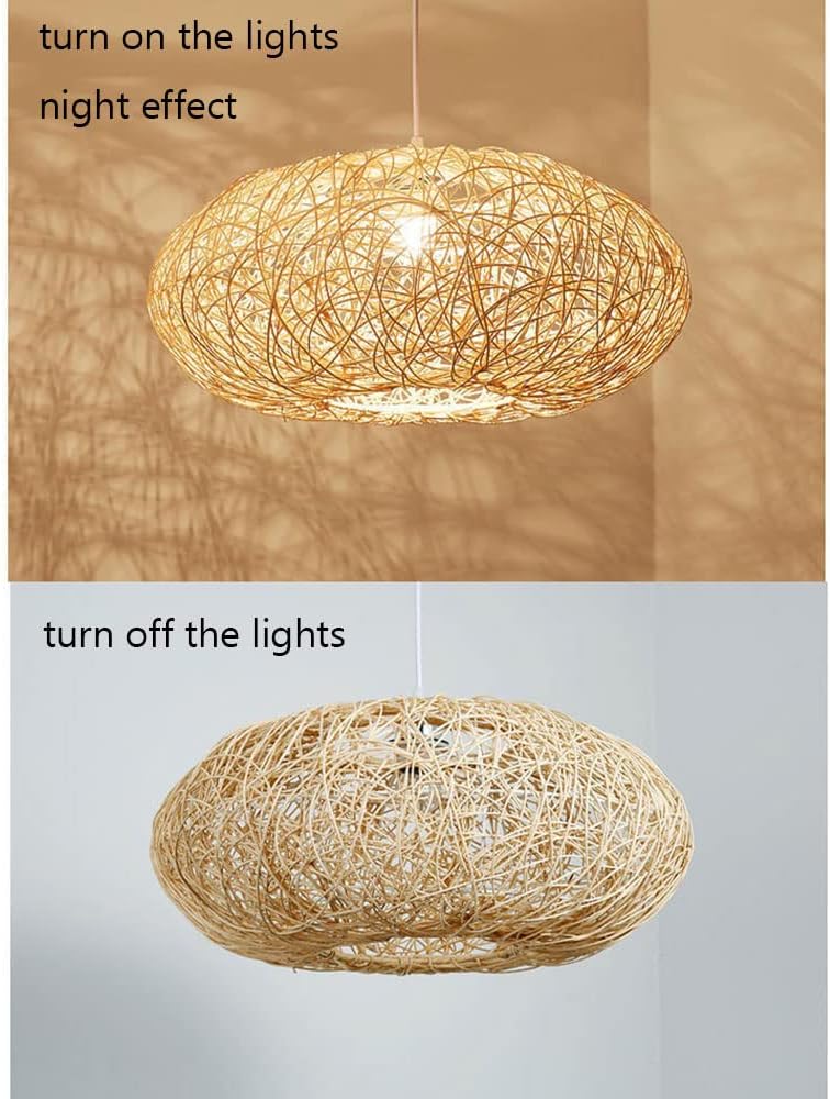 Product Parameters:Installation Type: hanging(hard-wired)Finish types: Handmade Material: Bamboo,rattanSIZE: 50cm*26cmHanging cable length 120cm/47.2in (adjustable) (Please contact us if you need to extend the size)Color: NaturalLight source type: E26/E27Power: 60W(MAX)Voltage :110-240 VoltsNumber of Light Sources: 1Include light source: NoLight Source Type:Fluorescent, Incandescent , LEDIncluded Components :Shade and Mounting HardwareSpecific Uses: kitchen,dining,bedrooms,living room,stairwellsNotes: Any problems,just please contact us or a licensed electrician.