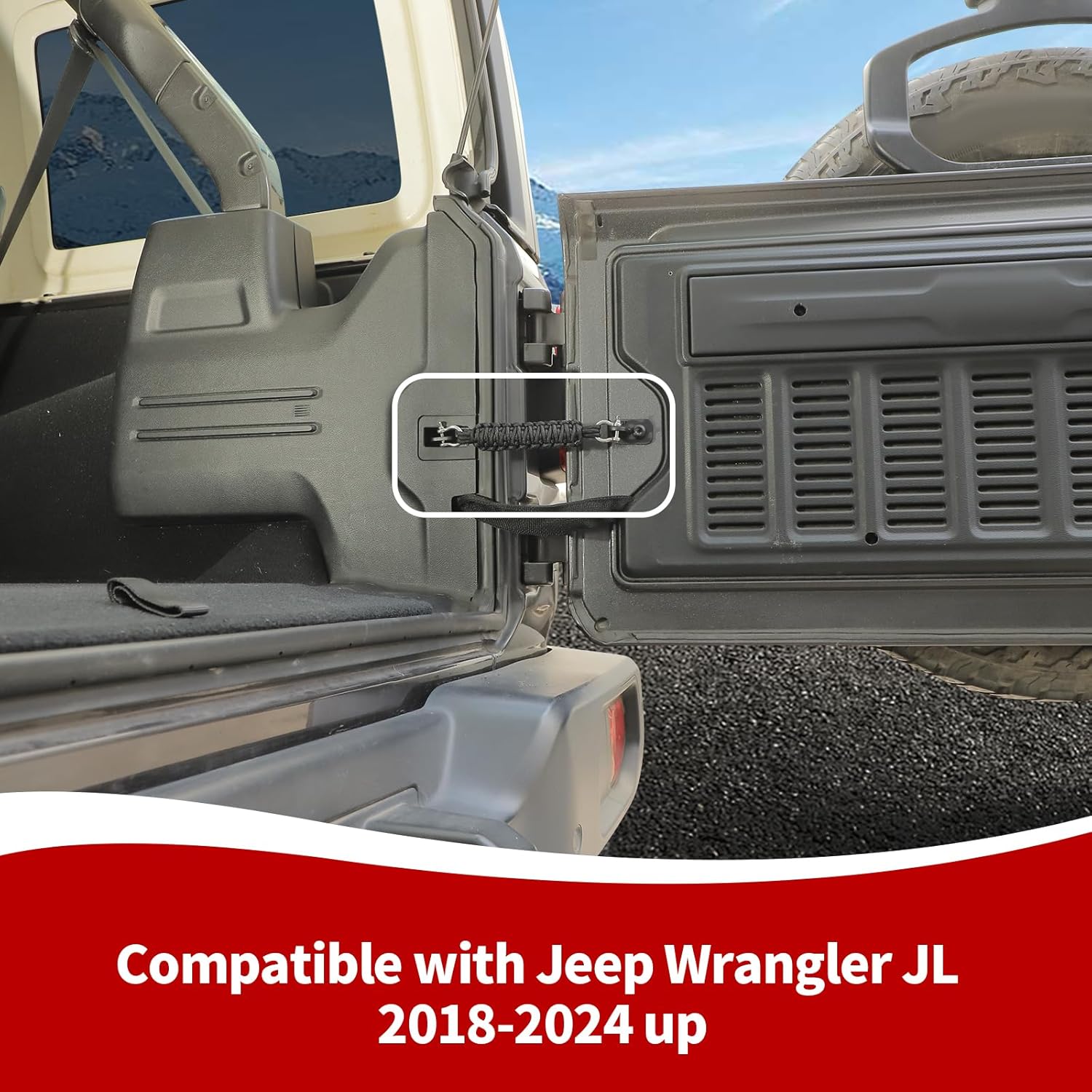MODEL: -Compatible with Jeep Wrangler JL JLU 2018 2019 2020 2021 2022 2023 2024 up. NOTE: -Please check if your trunk has holes, if not you will need to pre-drill it! -If you have any questions about jl tail gate stopper, please feel free to contact us, thank you! INCLUDE: -for Jeep JL tailgate check
