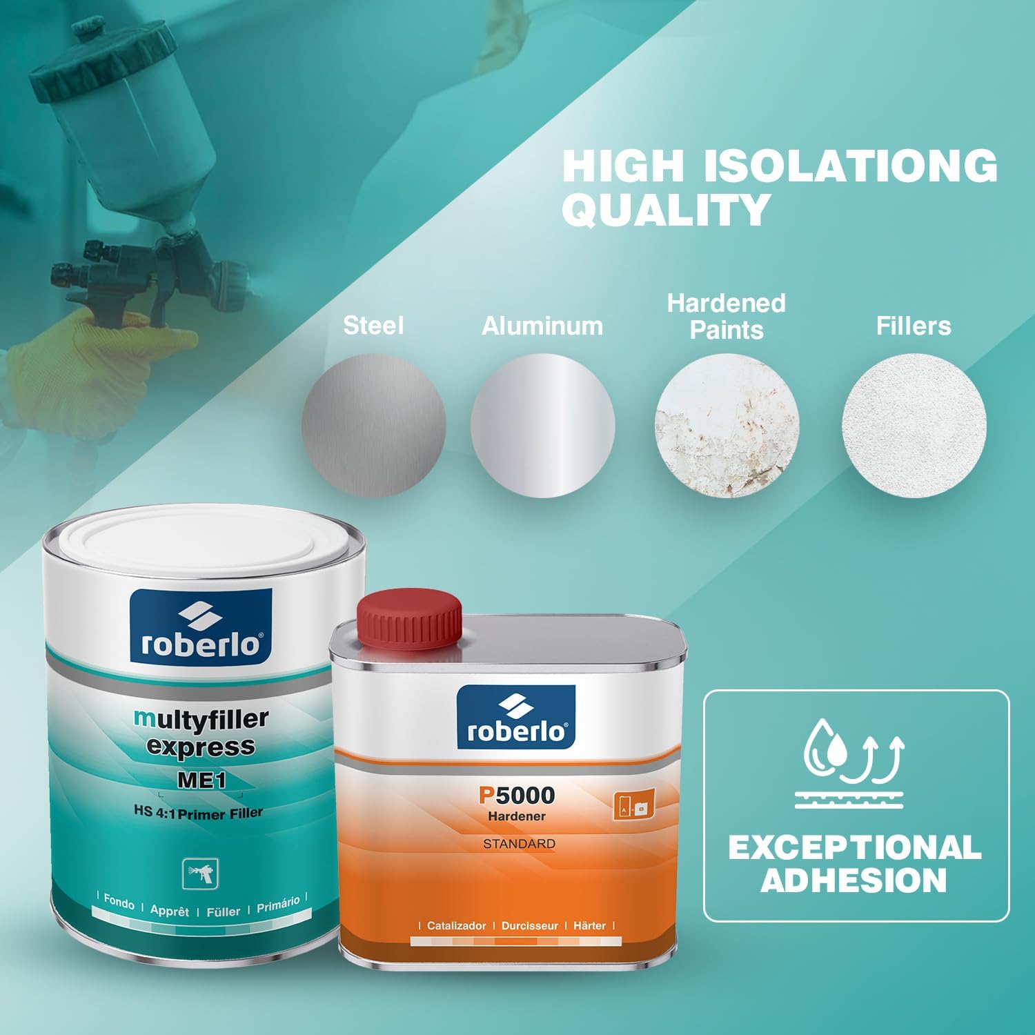 | Included Components | 1 liter of Roberlo MULTYFILLER EXPRESS ME1 Primer, 500 ml P5000 Hardener Standard |