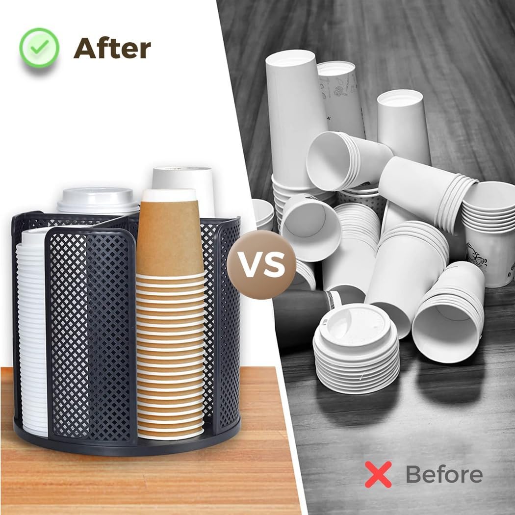 Color: black Material: plastic Size: 9.25 times;9.25 times;8.66in Package Includes: 2 times;cup and lid organizer Note: - Please refer to the measurement. Tiny measuring error is allowable in normal range. - There might be a little color difference due to the monitor, camera or other factors, please refer to the physical item.