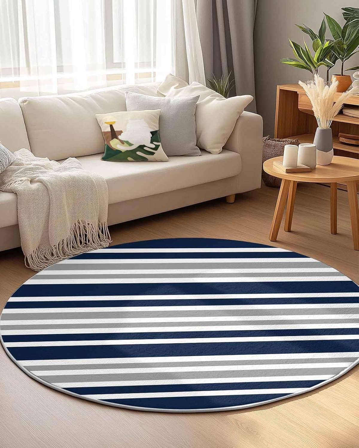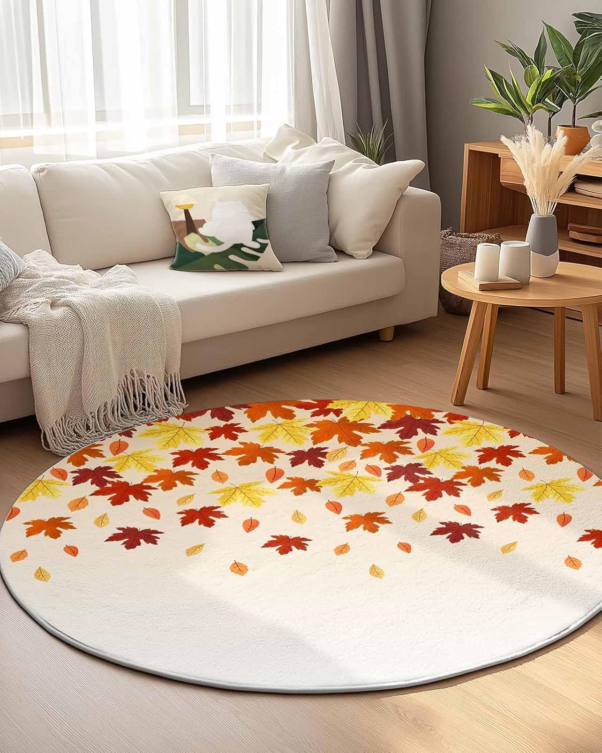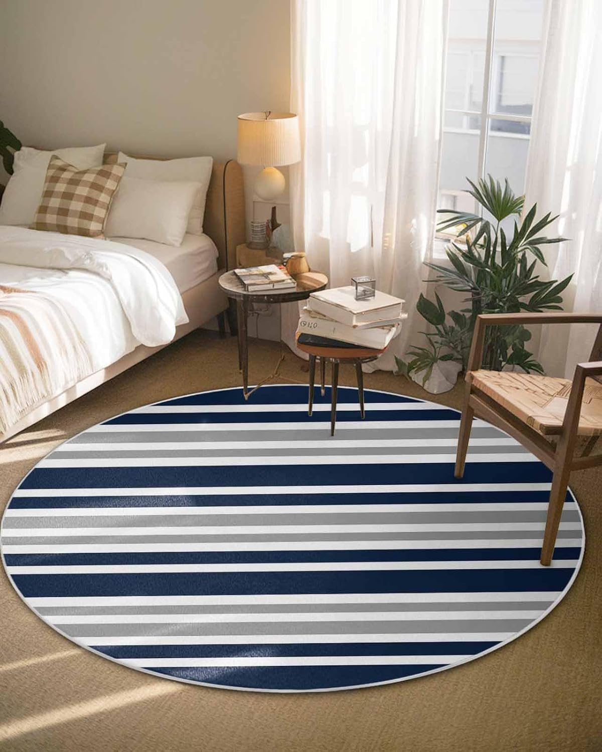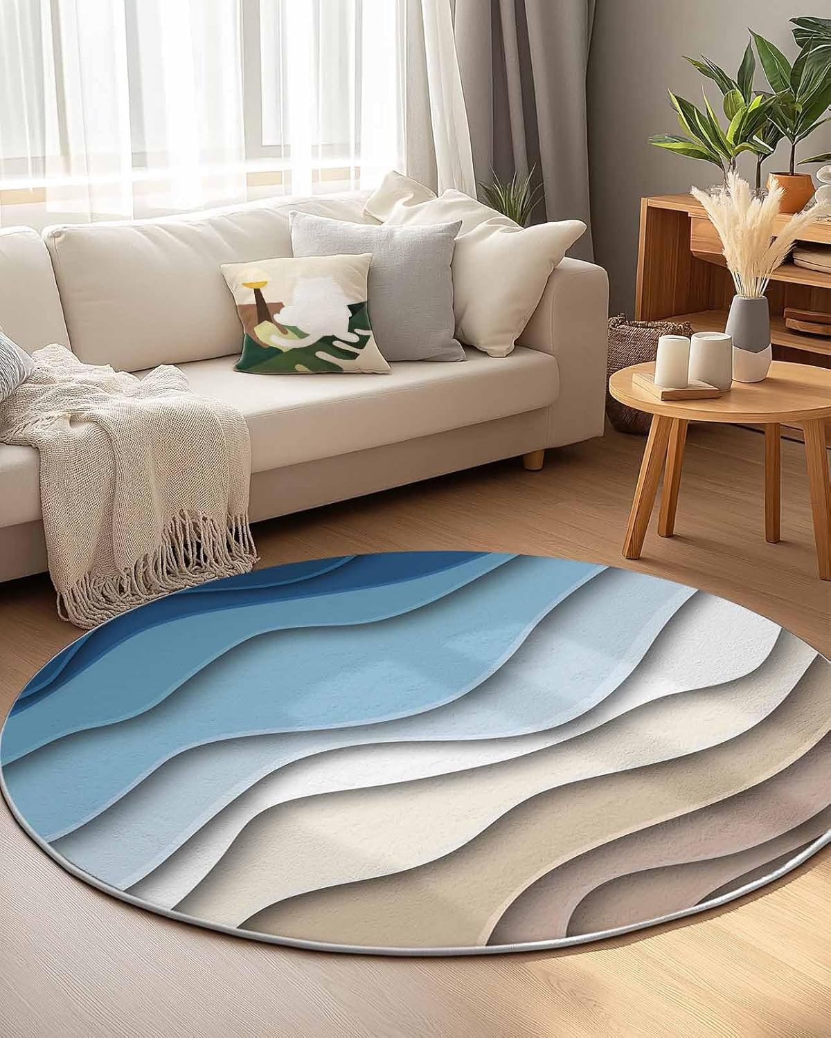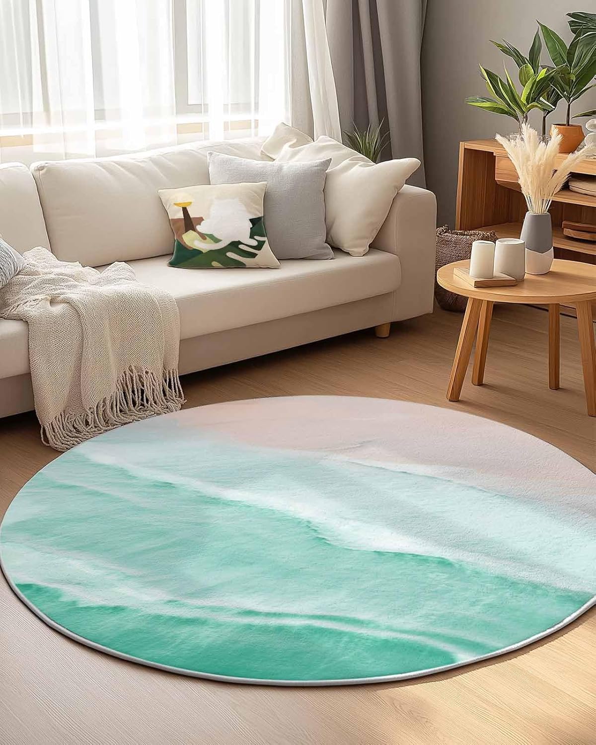 Our round area rug is designed to blend seamlessly with any room decoration, from modern style to traditional style. Our versatile and stylish rug that is sure to become a long-term favorite in your home or workplace, elevate the look and feel of your space.Soft TextureIndoor carpet is made of premium fine belgian velvet, our circle rug has a soft and cozy surface that your feet will love sinking into, creating a warm and inviting atmosphere.Non-slip Rubber BottomThe durable rubber bottom hugs the ground, keeping the rug where you want it, allowing childrens, pets and the elderly to walk safely.Convenient Foldable FeatureNon-slip rug flexible belgian velvet material is easy to fold, convenient storage or transport to different rooms when not in use.Multi-Room AdaptabilityFrom a cozy living room sofa to a quiet bedroom, a practical dressing table, a casual vacation home, a fun kids room, a welcoming guest room, a simple dorm to a professional office, our round area rug is versatile.