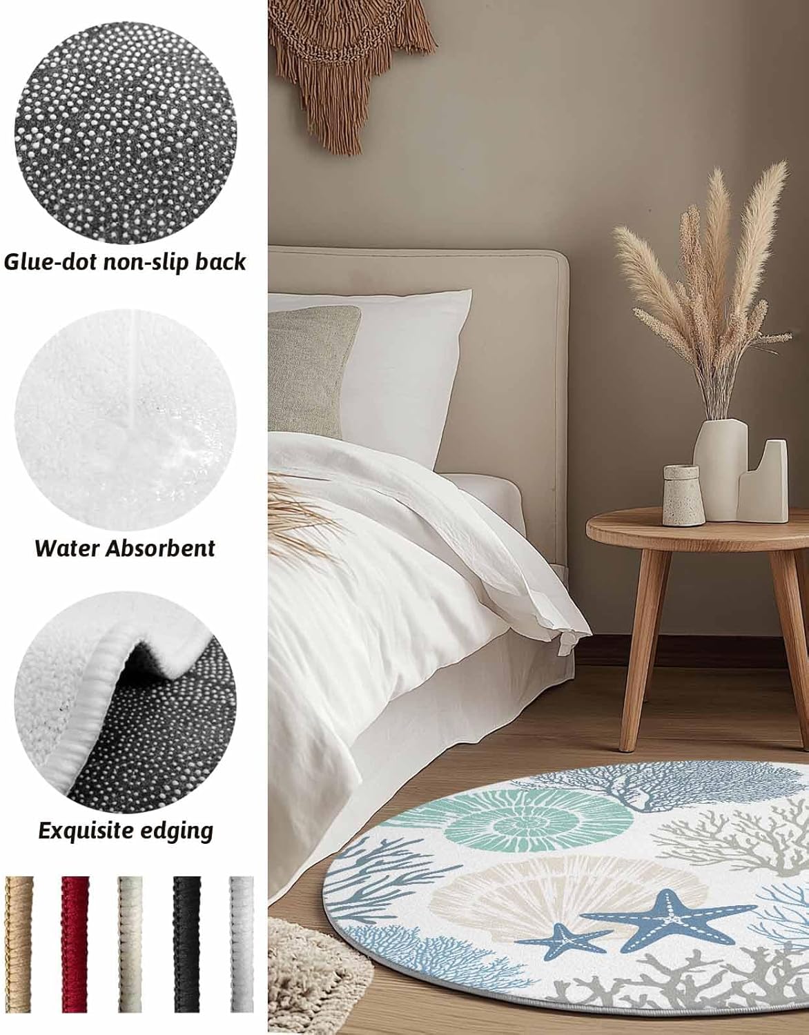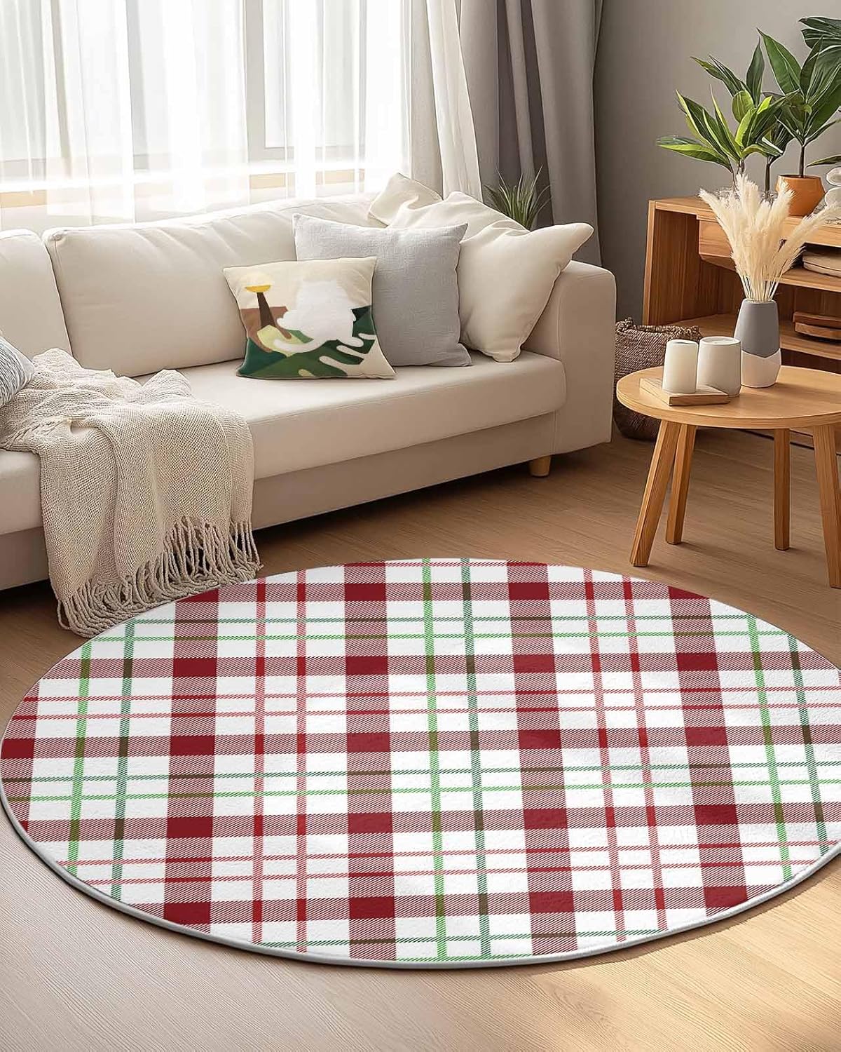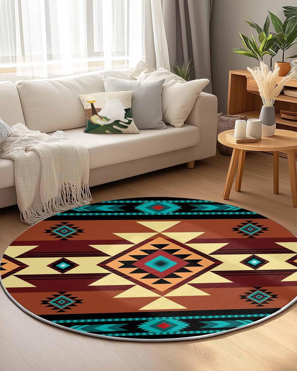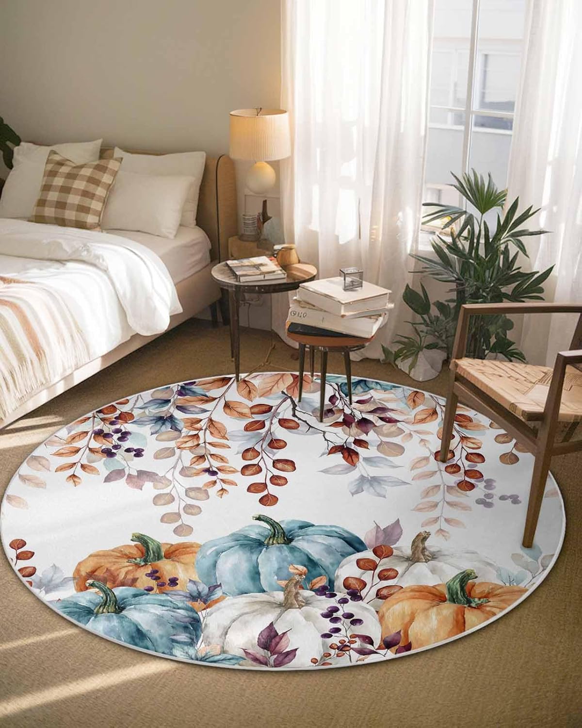 Our round area rug is designed to blend seamlessly with any room decoration, from modern style to traditional style. Our versatile and stylish rug that is sure to become a long-term favorite in your home or workplace, elevate the look and feel of your space.Soft TextureIndoor carpet is made of premium fine belgian velvet, our circle rug has a soft and cozy surface that your feet will love sinking into, creating a warm and inviting atmosphere.Non-slip Rubber BottomThe durable rubber bottom hugs the ground, keeping the rug where you want it, allowing childrens, pets and the elderly to walk safely.Convenient Foldable FeatureNon-slip rug flexible belgian velvet material is easy to fold, convenient storage or transport to different rooms when not in use.Multi-Room AdaptabilityFrom a cozy living room sofa to a quiet bedroom, a practical dressing table, a casual vacation home, a fun kids room, a welcoming guest room, a simple dorm to a professional office, our round area rug is versatile.