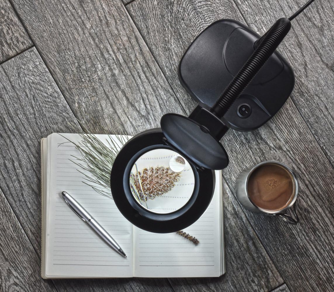 The SE COB Illuminated Table Magnifier is ideal for magnifying coins, crafts, jewelry, maps, prints, stamps, watches, and more. The COB bulb provides illumination, so you can examine or read even in dim lighting. This product is also great for working with small parts and details. It features a convenient 12" flexible neck, so you can adjust the magnifier to different heights and positions. The power supply is 100V- 240V, 60Hz. It has a black base and neck, and the 2 prong cord is approximately 5 feet long. Please Note: Glass lens magnifications and diopter may vary +/- 1x. Caution: Keep away from direct sunlight. Direct sunlight through the lens may cause fire. Do not use if cord is frayed, cut, or damaged. Do not overstretch. Keep away from children. This is not a toy. SE is committed to providing the customer with the best source for value possible on the market. You will enjoy the quality, function and usefulness of our SE COB Illuminated Table Magnifier. IPR Rights Notice: Important: Avoid getting counterfeit items. Genuine SE products come with the SE logo on the packaging. SE is a registered trademark protected by US trademark law.