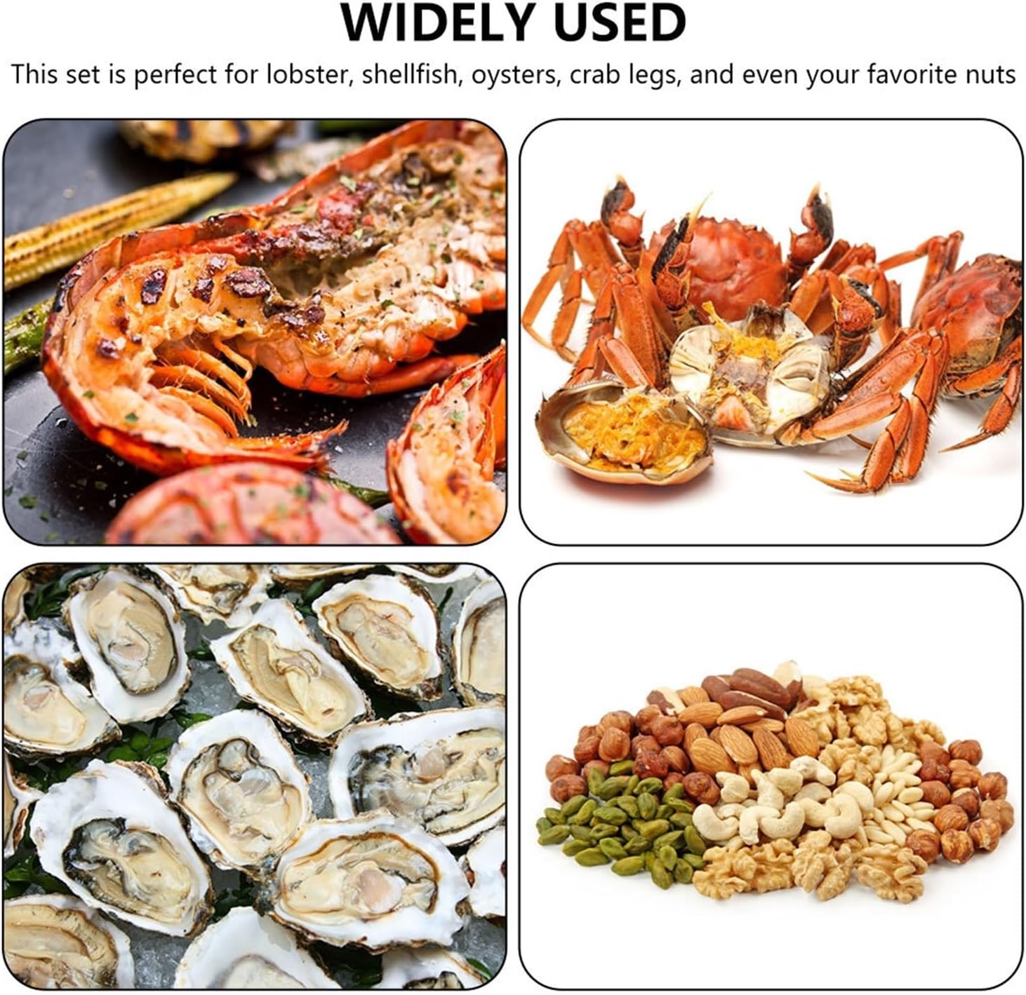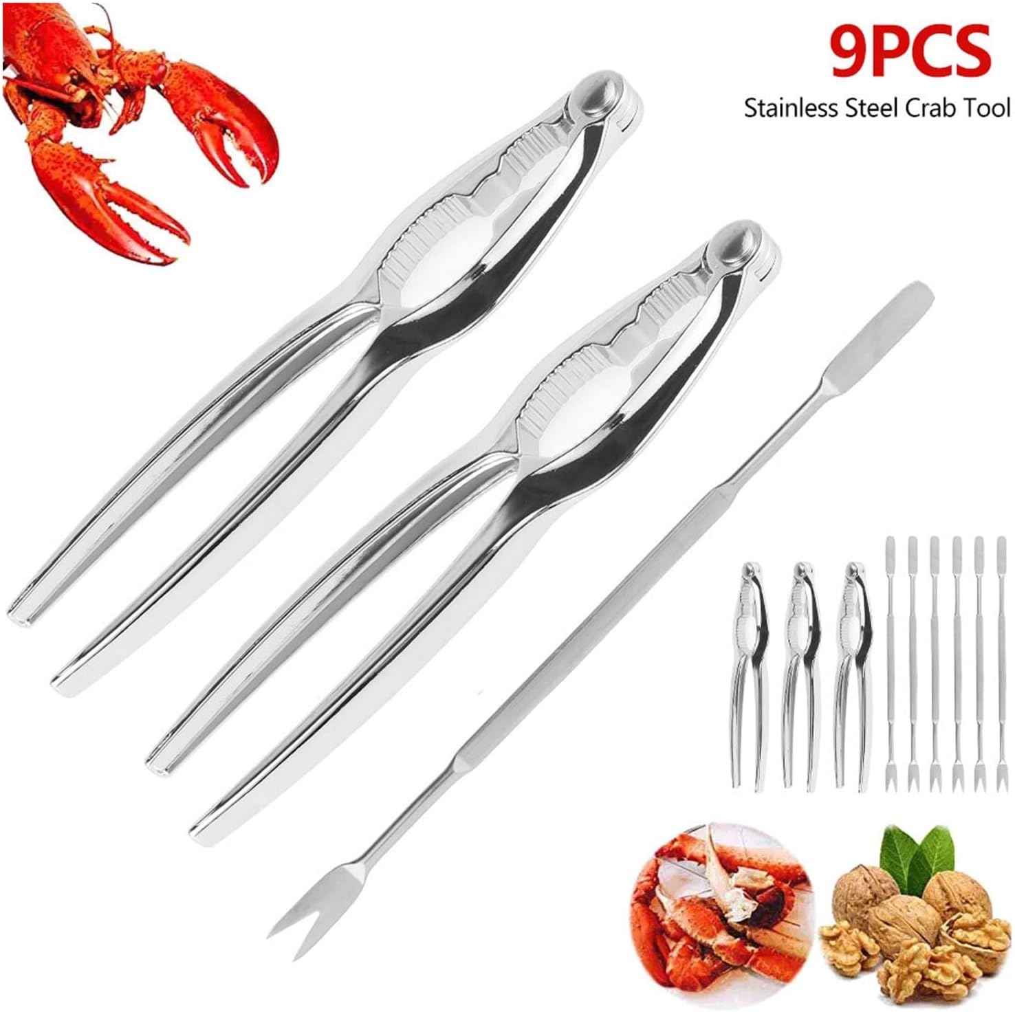 Ideal for restaurants and family picnic seafood parties, meets all your needs, easy to carry around, reusable and dishwasher safe, let you enjoy your dinner without sweating profusely or leaving behind hard to reach meat!Product Name: Seafood ToolsMaterial: zinc alloy + stainless steel Size Walnut clip: 15.3 x 3.3 cm Crab fork: 16 cmPackage Includes6* crab fork (flat)3* walnut clipsNotes:1. please check the size and colour before purchase.2. items other than seafood tool kit product photos are not included.3. please note that due to different monitors, there may be a slight colour difference, please understand.4. please allow a small error due to manual measurement, please refer to the actual size, thank you.
