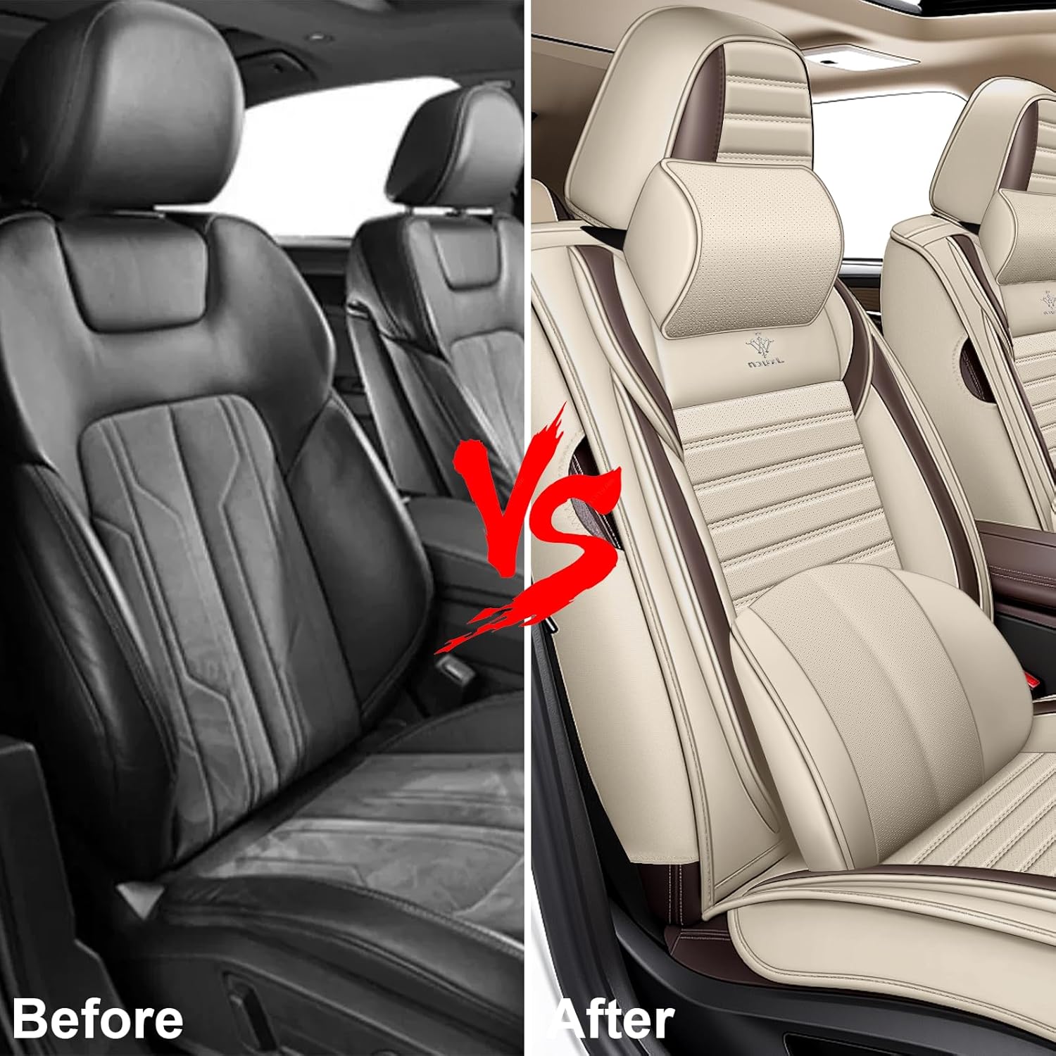 Advanced ProtectionOur seat cover is made of high quality leather, can increase the comfort, at the same time to protect your seat from leaking, besmirch, pet hair damage. They are resistant to fading, gentle to the touch, waterproof, breathable and you will stay cool and comfortable on your driving routes.Safe and Non-Slip DesignThe surface of this leather car seat cover is made of non-slip rubber particle fabric, which can effectively increase the friction, make the seat cover and the seat more fitThe driver's seat cover will not move during the driving process to ensure the safety of driving.Give you enough security to drive.Fashionable StyleThe design of this car seat cover is characterized by a stylish two-color design and two-thread sewing design, so that our seat cover is fashionable and firm at the same time,We have Black, Black Red, Black Gray, Black Blue, Black Brown, five colors for you to choose, in addition, we have two kinds of deluxe and standard packages to choose from, the specific difference can be seen in the detailed picture, You can choose and match according to your own preferences or needs.Warming Tips1. During the installation process, please do not pull the sewn rubber band, rope, etc., so as not to damage the seat cover or seat.2. After the installation is complete, check whether the seat cover is smooth and ensure that all fixed points are firmly fixed.384. Prolonged direct sunlight may cause discoloration or aging of the seat cover, so try to avoid parking the vehicle in direct sunlight.