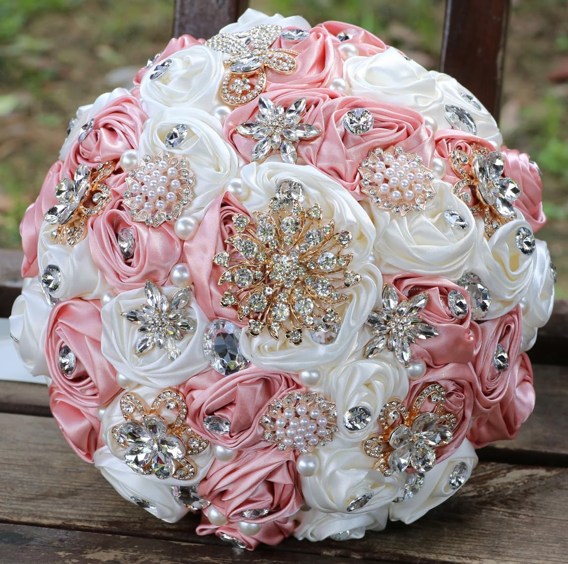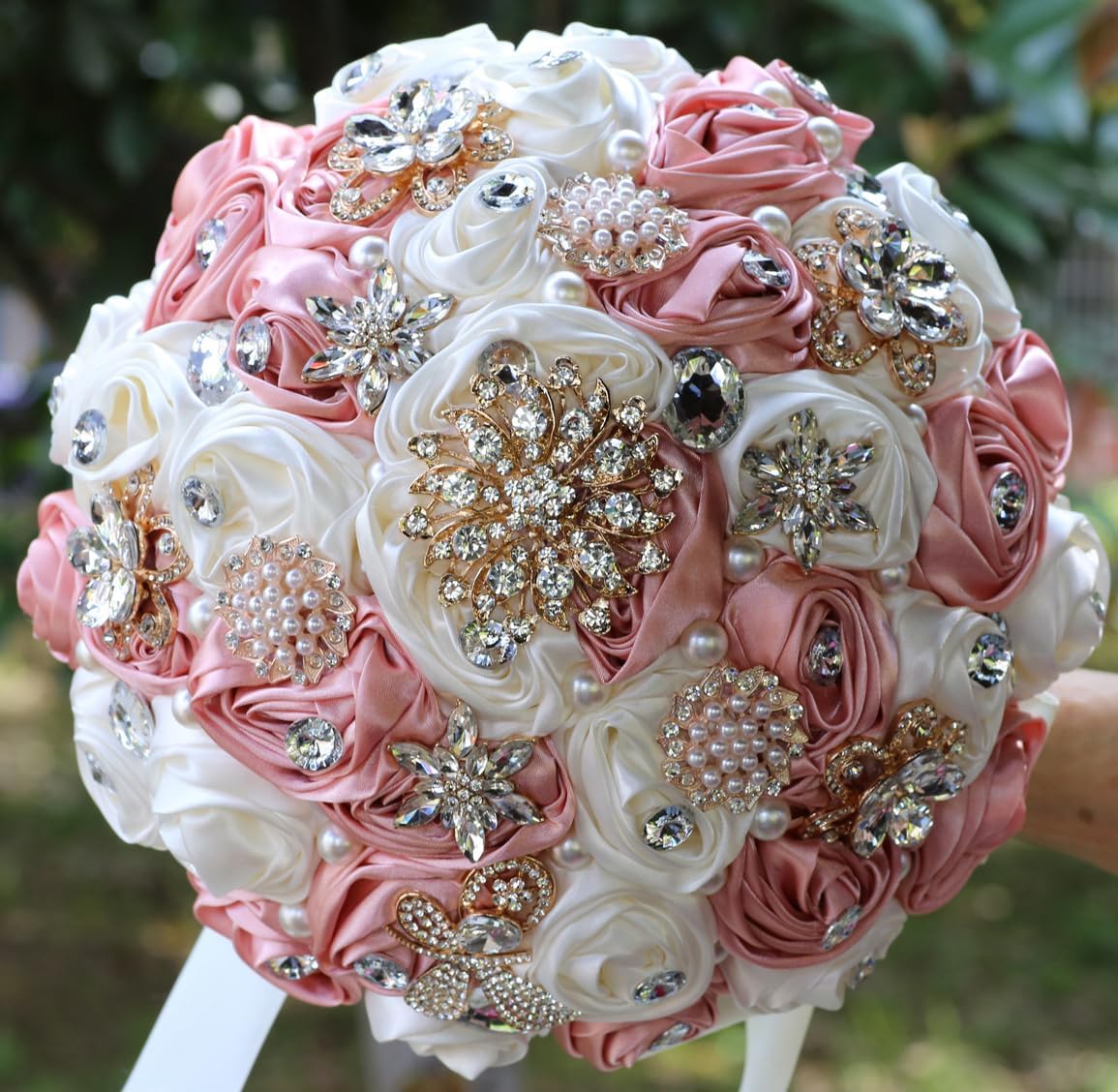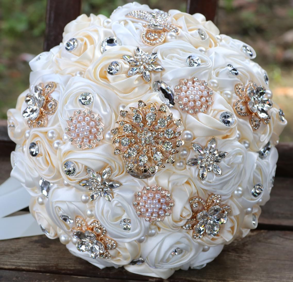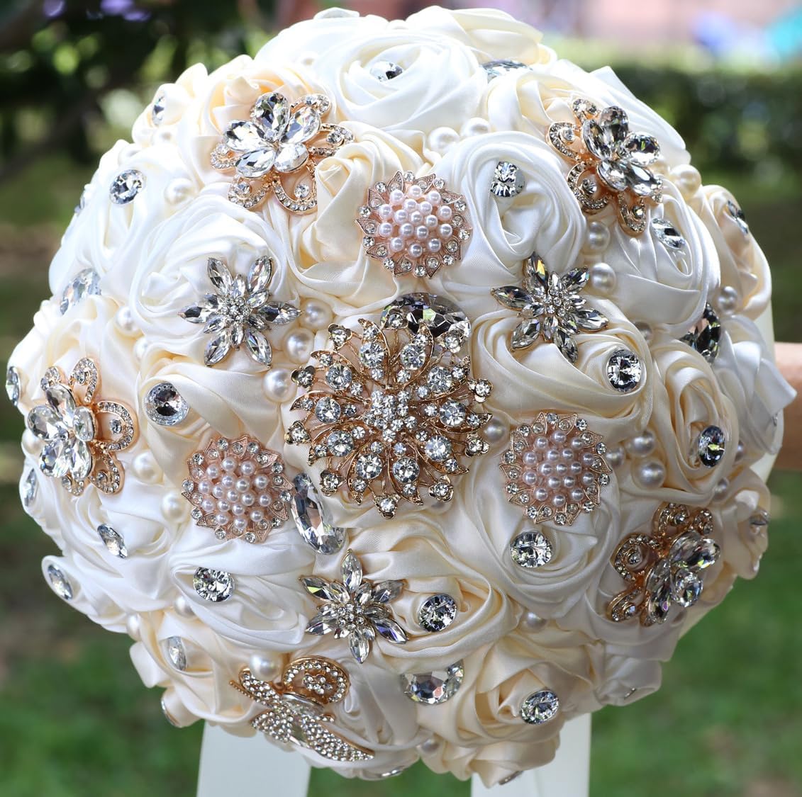 Our bouquets have 4 sizes for different customer needs. They are, by diameter, 6.3", 7.5", 8.7" and 9.8". Recommend 6.3 inch mini bouquets for flower girls or toss use, 7.5 inch small bouquets for bridesmaids and 8.7 inch or 9.8 inch big bouquets for the bride