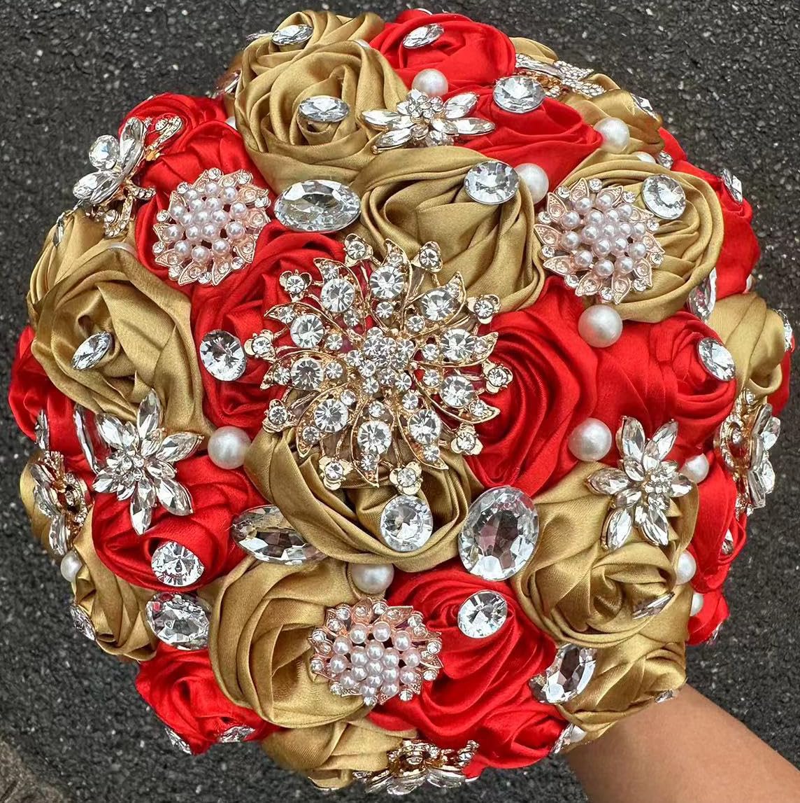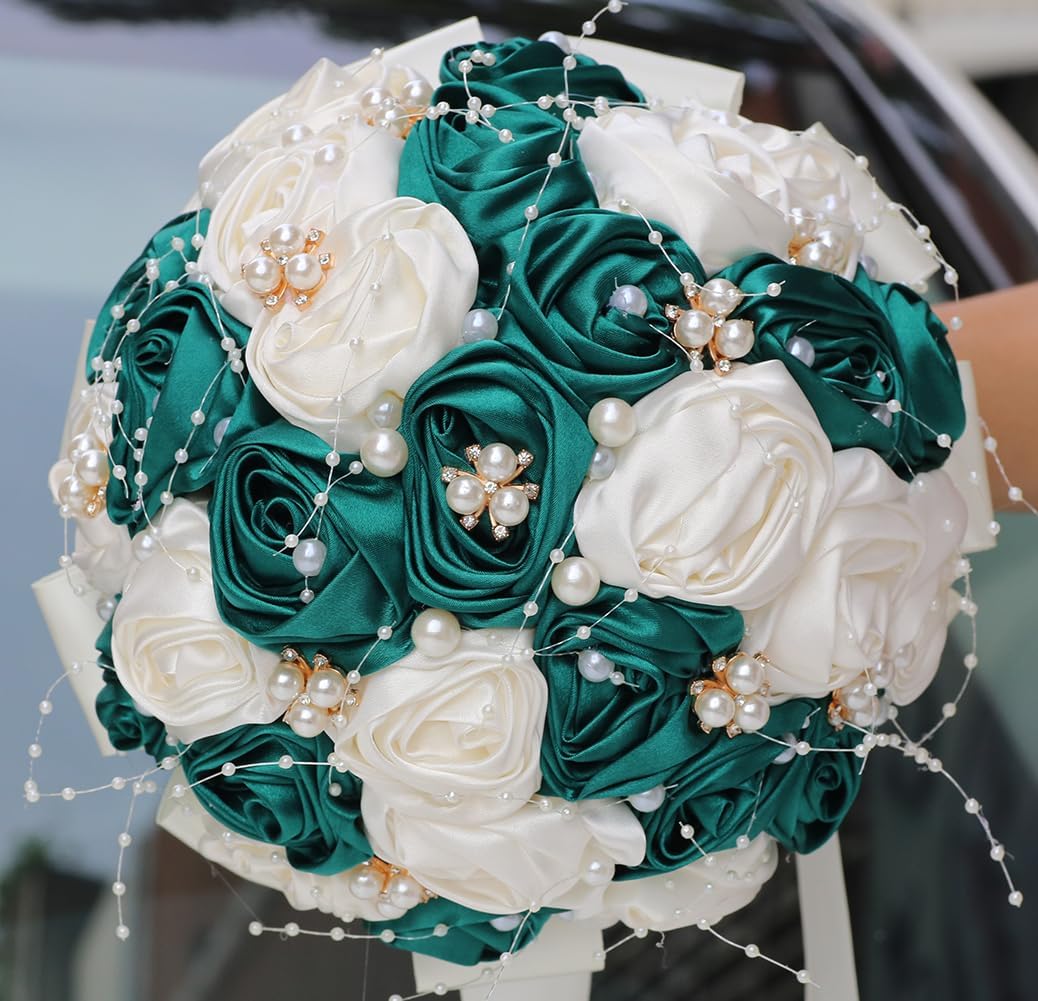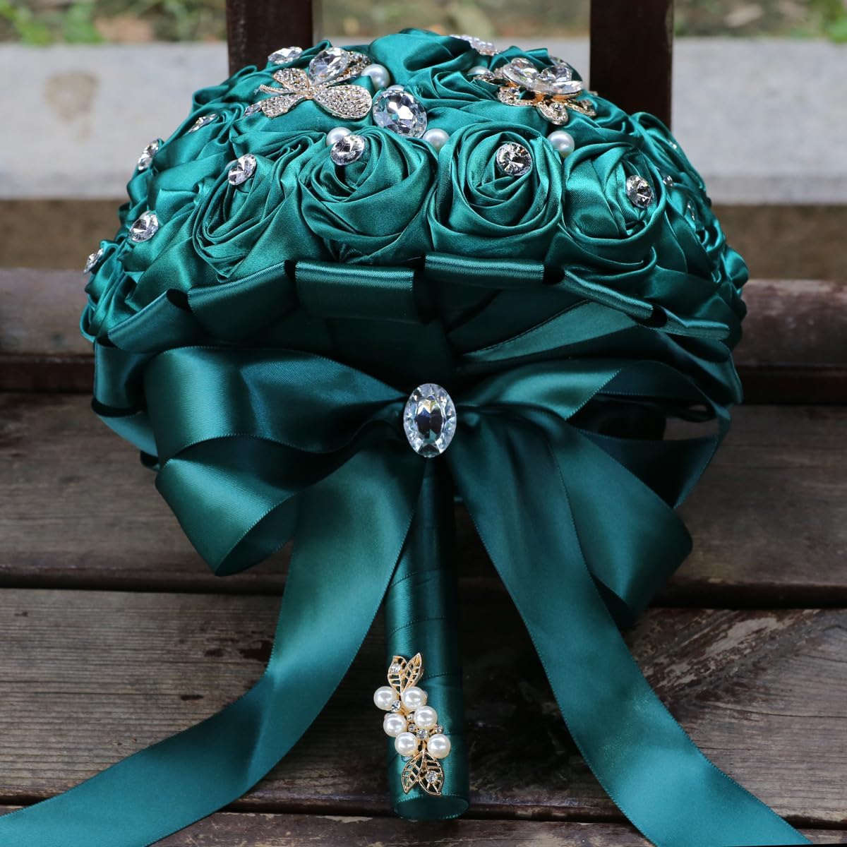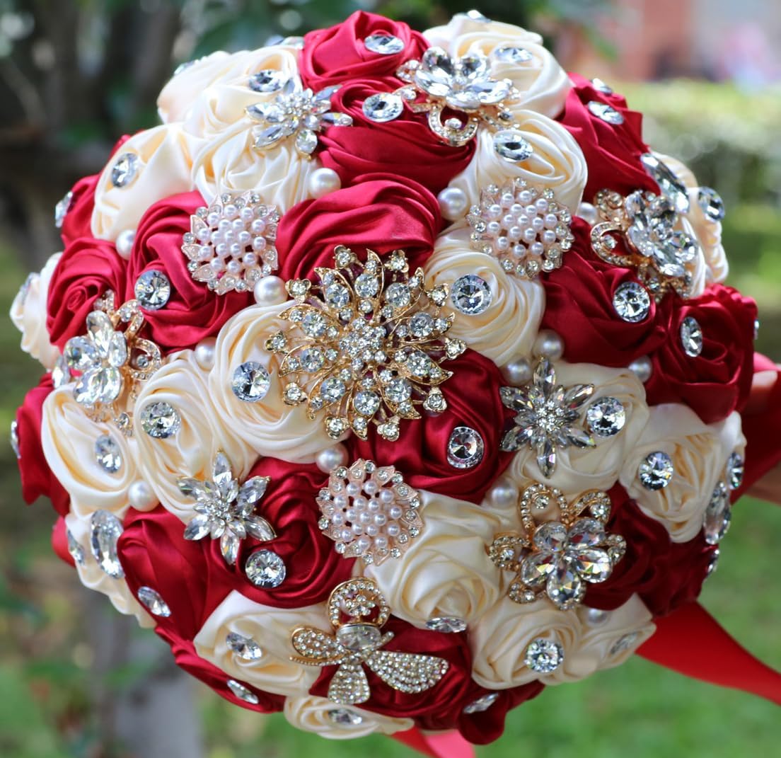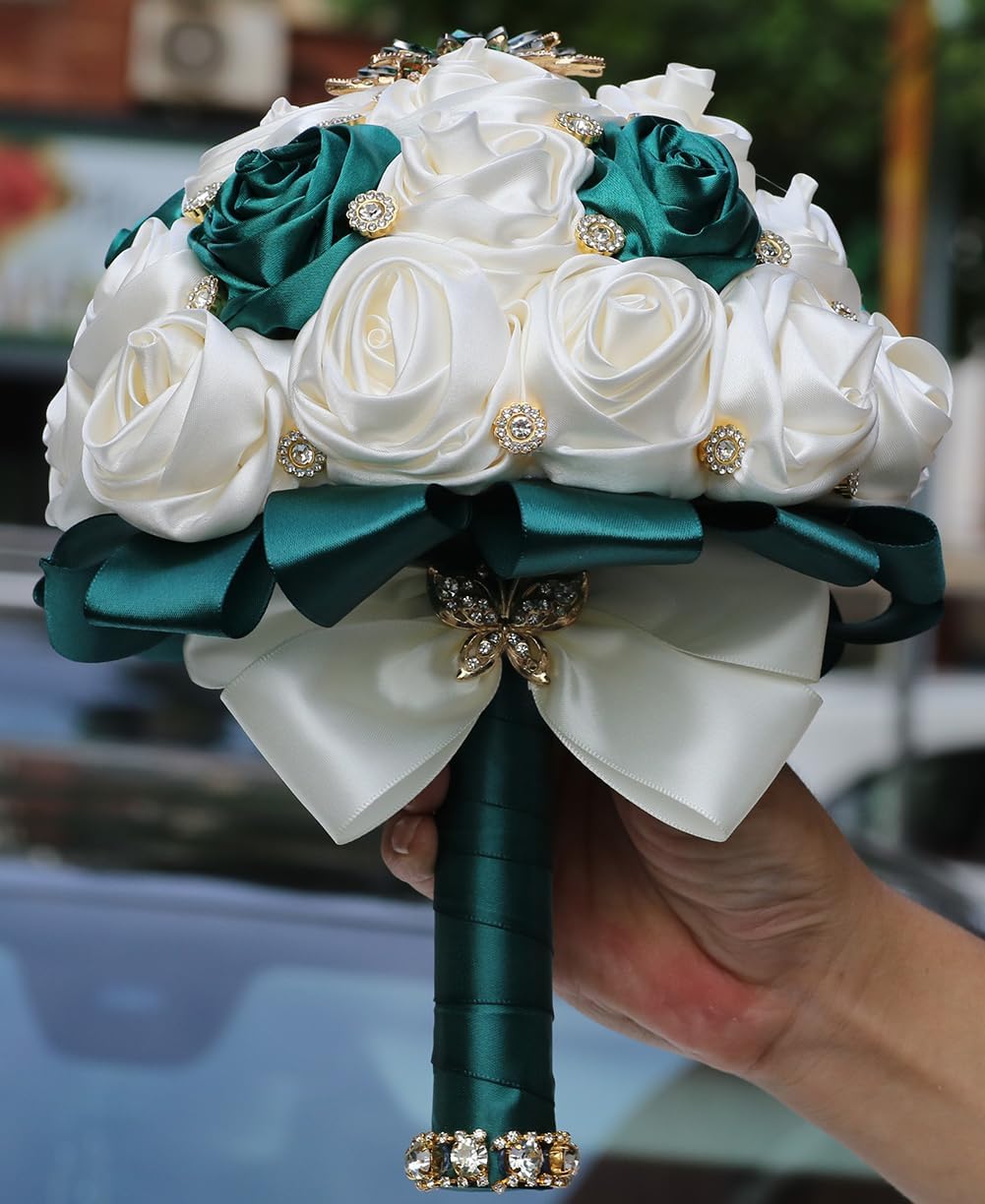 Our bouquets have 4 sizes for different customer needs. They are, by diameter, 6.3", 7.5", 8.7" and 9.8". Recommend 6.3 inch mini bouquets for flower girls or toss use, 7.5 inch small bouquets for bridesmaids and 8.7 inch or 9.8 inch big bouquets for the bride