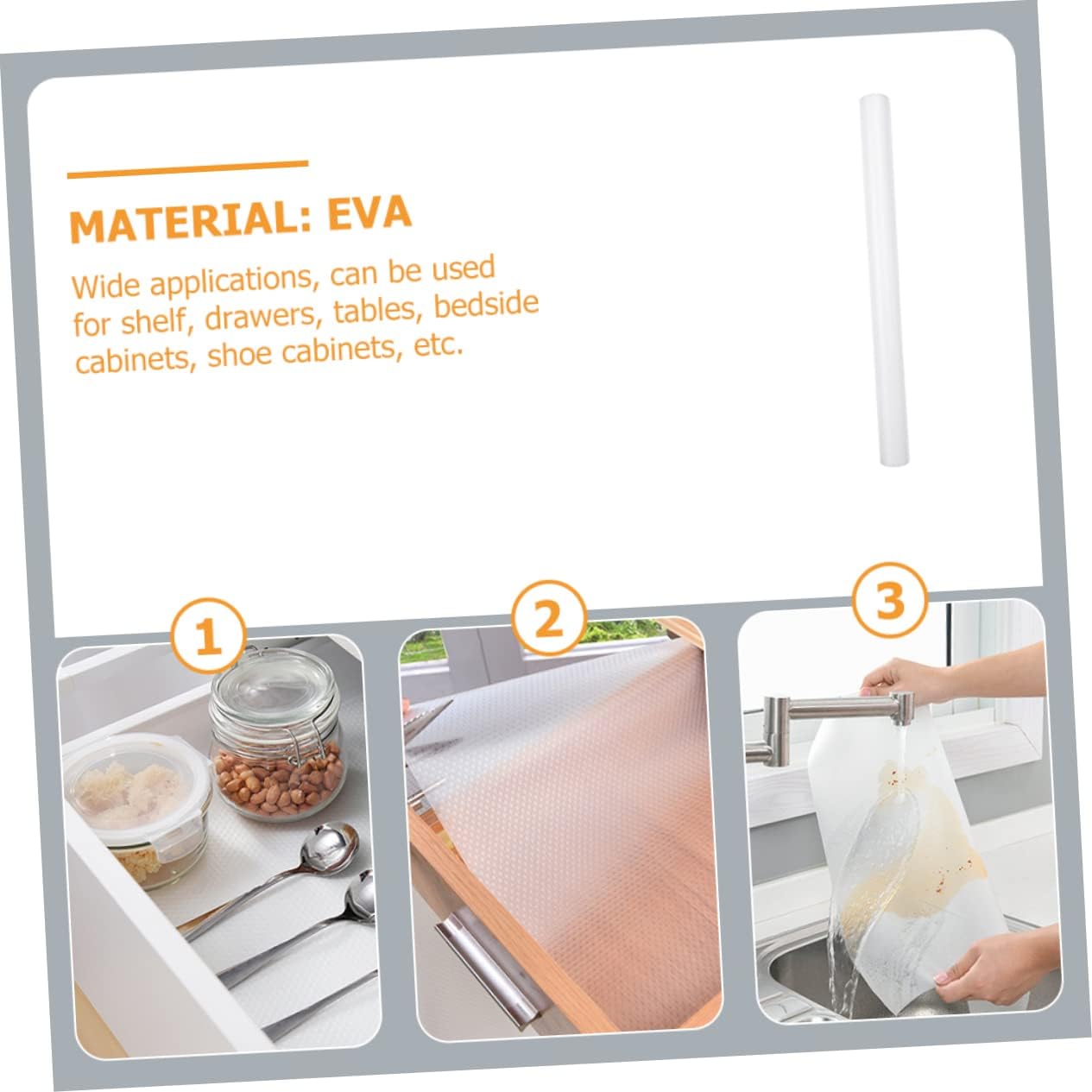 Package Include 1 x Shelf Liner Characteristics - Material: EVA Non-adhesive Cabinet Liner. - Size: 150.00X60.00X0.10cm/58.95X23.58X0.04inch Waterproof Shelf Liner. - Suitable for shelf, kitchen cabinets, wardrobes, drawers, bookshelves and other places Protective Kitchen Cabinet Liner. - , oil-proof and waterproof, the drawer liner is useful and Protective Shelf Liner. - Made of high-grade material, and , easy to clean, long serving life Cabinet Liner. - Making the home environment more tidy and , very convenient to use Kitchen Cabinet Liner. - It can be cut at will and used flexibly, can easily meet your different needs Non-slip Shelf Liner.Goods InformationProtective Kitchen Cabinet Liner Our cabinet liner is light, and waterproof, .Cabinet Liner Easy to clean, convenient maintenance and use.Shelf Liner Also can be used for home cabinet and drawer.Protective Drawer Liner For proper sizes and simple shapes, you can simply trim the liners to get the liner you need