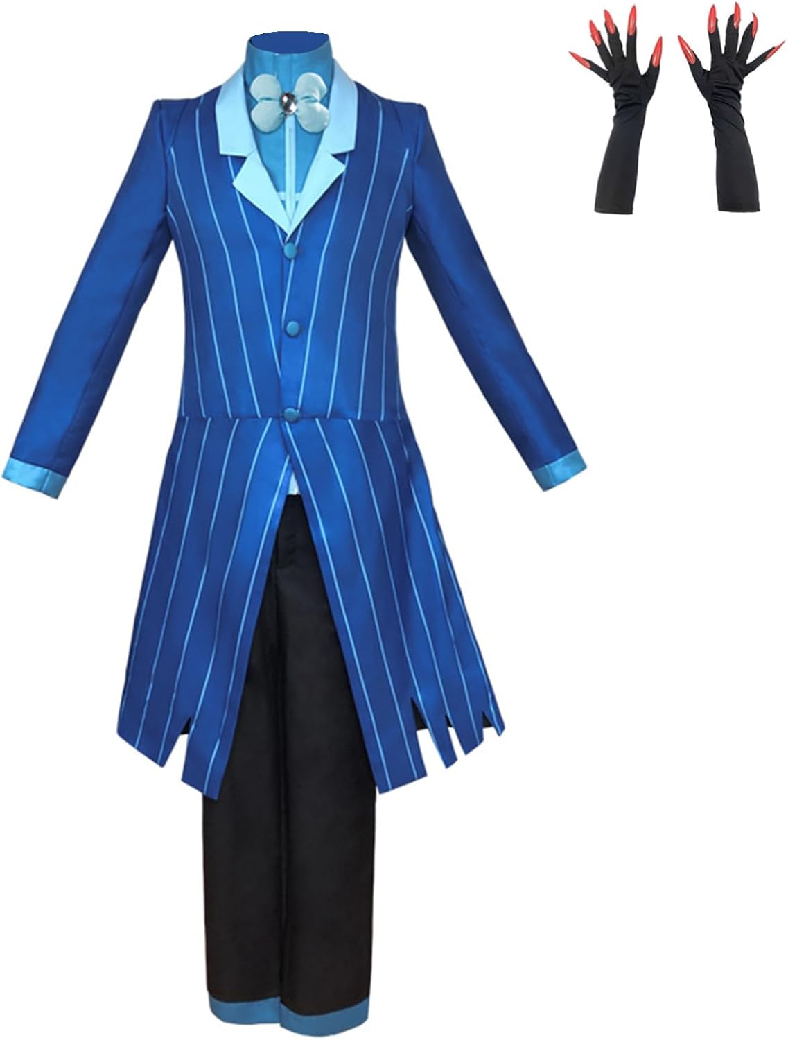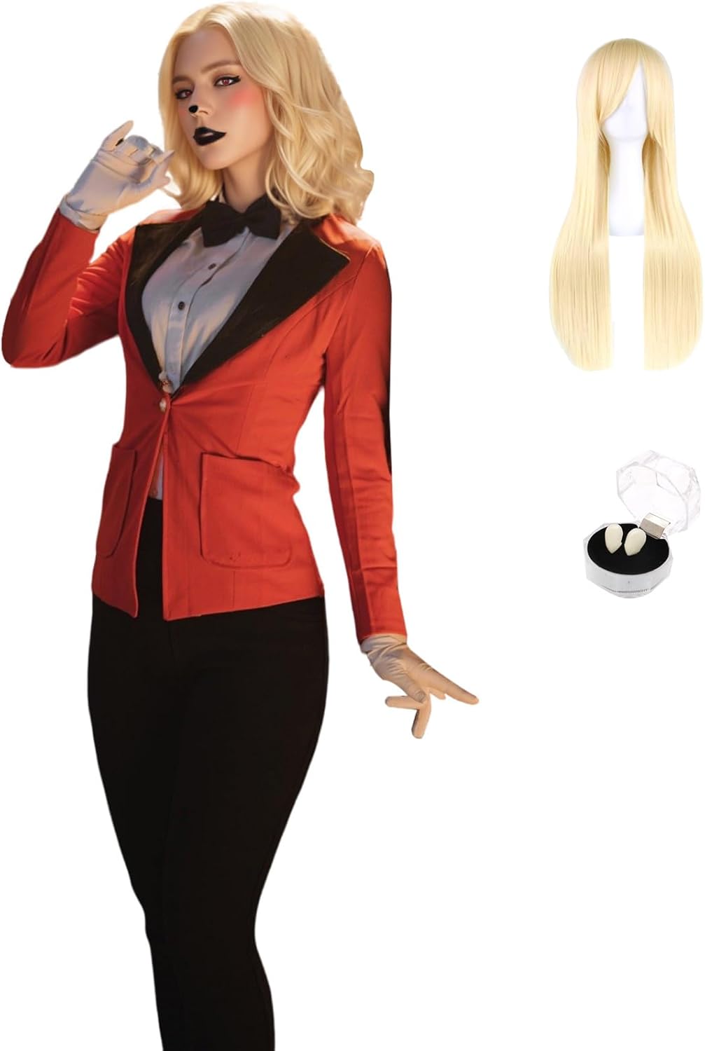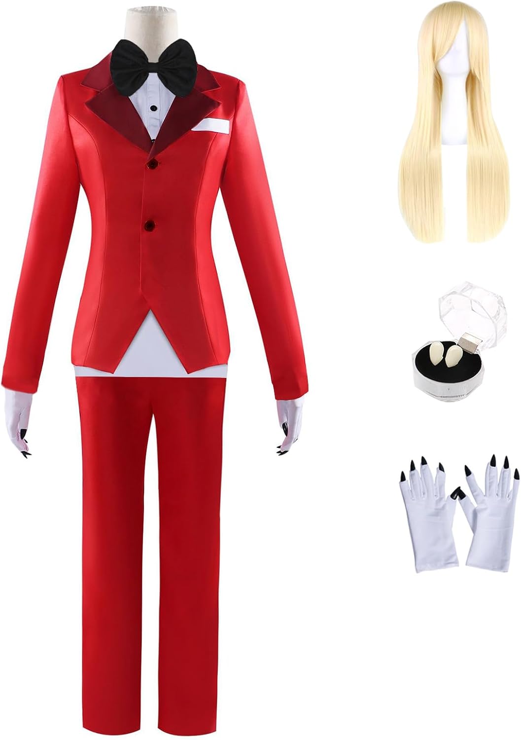 Halloween Women Men Fashion Anime Red Striped Suit Uniform Jacket Punk Costume Charlie Radio Demon Cosplay Outfit Full Set NOTICE Recommended hand wash, hang dry, do not bleach. Use these methods to preserve this costume in good condition.
