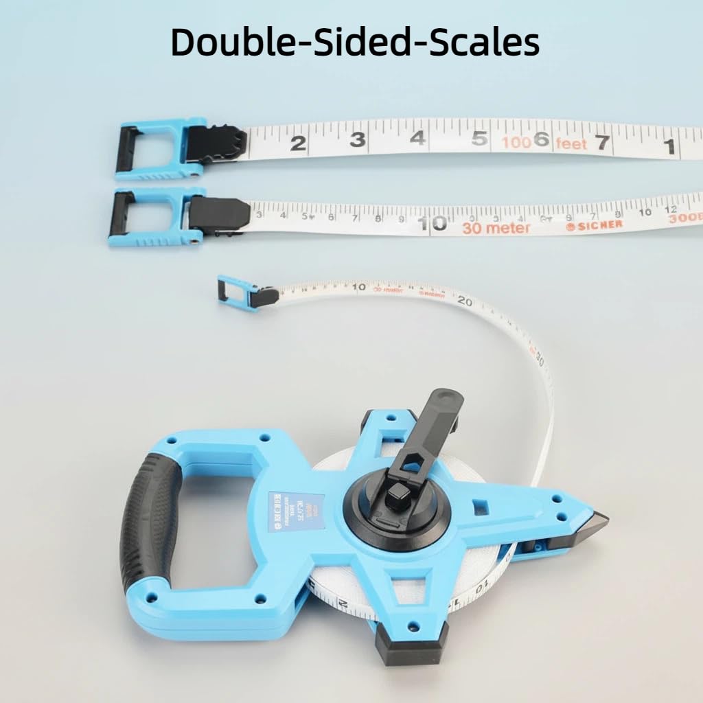 Professional 100ft Dual-Sided Fiberglass Measuring Reel – Precision, Durability, and Ease in One Tool.Elevate your measuring tasks with our 100ft (30m) Dual-Sided Fiberglass Tape Measure, engineered for professionals who demand accuracy and reliability in demanding environments. Whether you are marking sports fields, surveying land, planning campus layouts, or managing construction sites, this reel delivers exceptional performance every time.
