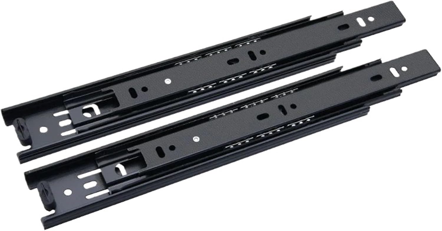 1. Concealed drawer slides give your drawers a clean and aesthetically pleasing look while maintaining practicality.2. We offer a variety of drawer slide sizes to meet different size and usage needs.3. Suitable for kitchens, studies, pantry, and other storage spaces.Materials:1.2mm high density thickened steel plateLoad capacity:45 kg / 100 bLength of closure:250-600MM, extension length 500-1200MMWidth:1.2 inches (45 mm)Thickness:0.47 inch (12 mm)Fixed gap:12 mm ±0.3 mmPackage contains1 pair of 100 lb lock drawer sliders