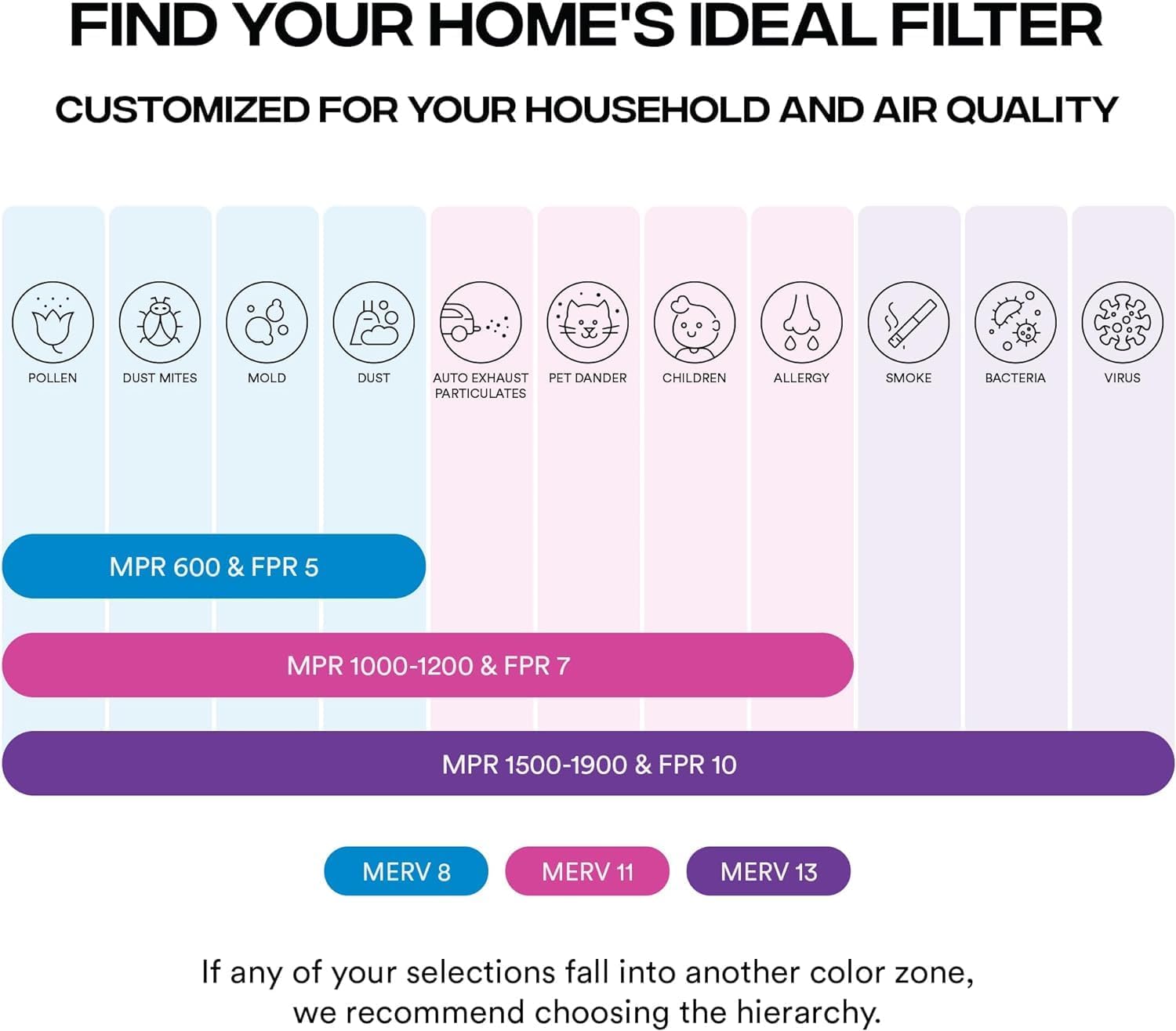 Introducing Simply Filters 12" x 12" x 1" MERV 8 Air Filter, your go-to solution for a healthier indoor environment. This six pack of filters, with an actual size of 11.75" x 11.75" x 0.75" is universally compatible, fitting seamlessly into both residential and commercial HVAC systems, working effortlessly with almost any brand. Comparable to renowned brands like 3M Filtrete MPR 600, Filterbuy AFB Silver, and Honey well l FPR 5, our filters are designed to create a cleaner environment by capturing airborne particles like dust, pet dander, lint, and pollen, ensuring fresh and clean indoor air.Experience advanced pleated technology with a higher pleat count than most retail filters, enhancing airflow and efficiency. Crafted in the USA with meticulous attention to detail, our filters are ideal for any residential setting, providing long-lasting performance for up to 3 months. Easy to install or replace, whether in air condition units, furnaces, heat pumps, or HVAC systems, simply slide the filter into the slot or follow the airflow arrows for return grills, and you're done!Your order is delivered germ and dust-free, thanks to our heat-sealed shrink wrap packaging. Consider significant savings with our subscription program for convenient auto-deliveries. Plus, experience the excellence of American craftsmanship - every filter is proudly made in the USA using 100% American components, ensuring superior filtration. Trust Simply Filters to exceed your expectations, delivering clean, fresh air for a healthier living and working space.
