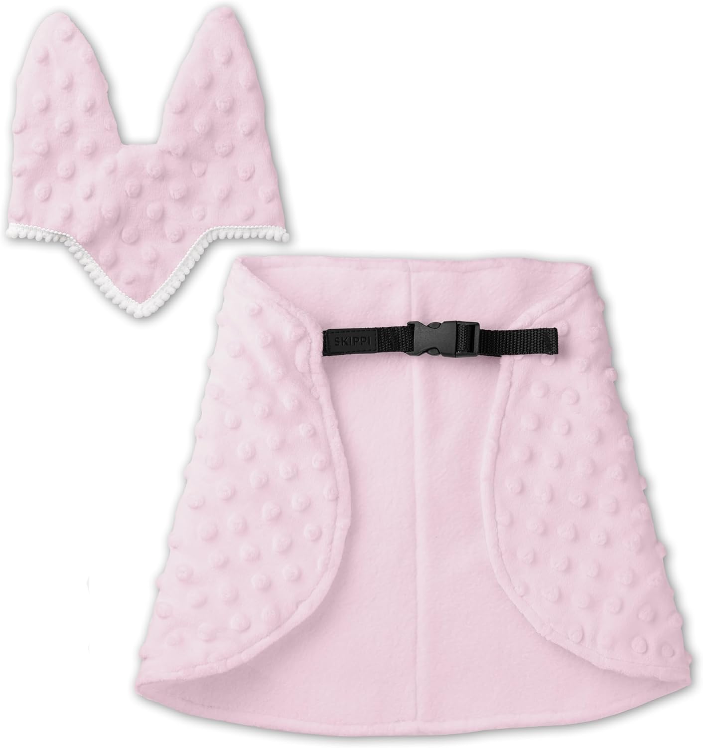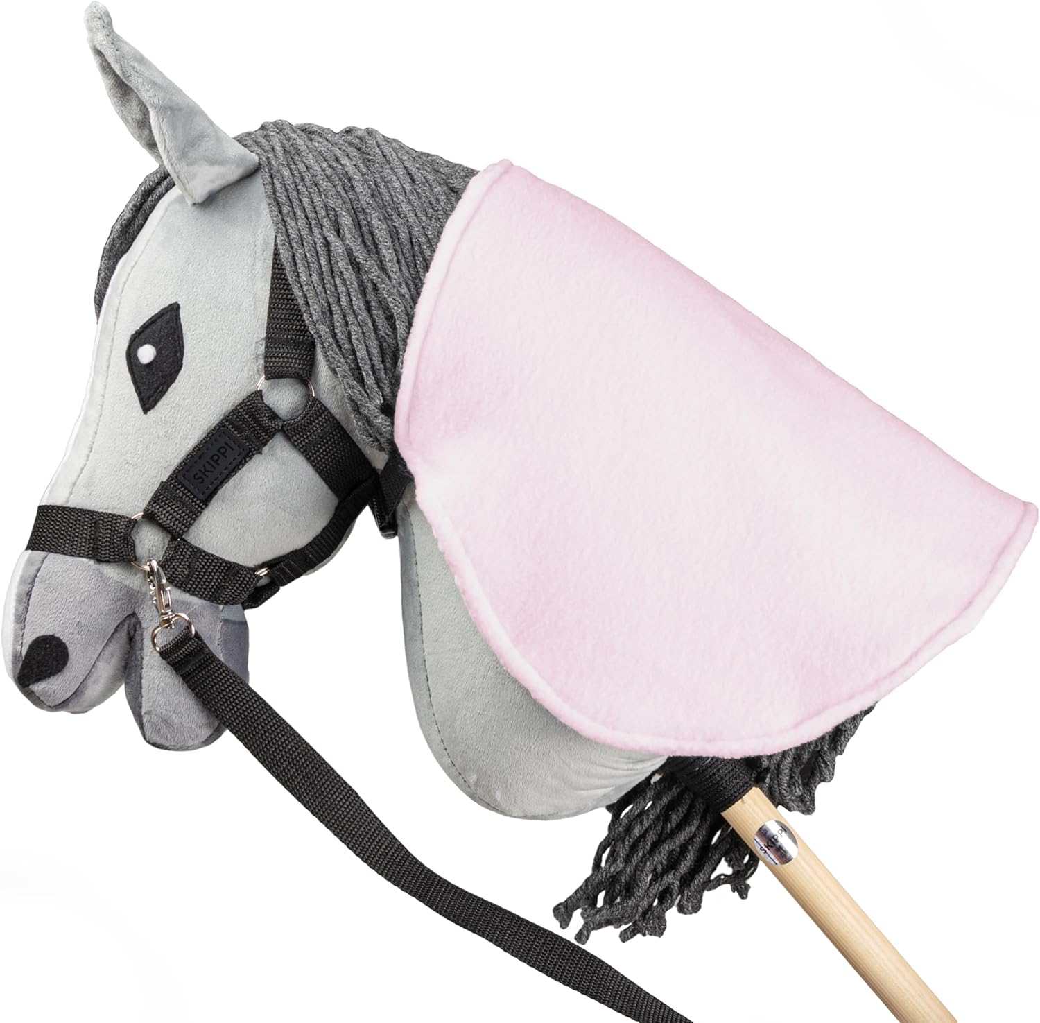 Gift for hobby horsing lovers: blanket and fly cover are not only stylish and cute accessories, but also a practical element of hobby horse equipment. Made from high quality materials, they provide protection against dirt and damage. They allow you to personalise the horse and give it a unique character. This is a gift that will surely bring joy and add even more magic to any hobby horse activity. HANDMADE IN EUROPE All Skippi horses and accessories are made in Europe. Skippi products are handmade by skilled craftsmen who pay attention to every detail to ensure the highest quality. Thanks to production in Europe, the accessories and hobbyhorses are durable and carefully processed, which means that the fun with the Hobby Horse lasts longer and becomes even more special. REVERSIBLE HORSE BLANKET - Twice the fun: although both sides of the horse blanket are pink, they are made of different materials and have different textures, which allows you to change the look of the hobbyhorse depending on your mood or occasion. It's like owning two blankets in one, which allows for quick adaptation to different game scenarios or performances. The meticulous workmanship of each page ensures that both are equally attractive and functional. The reversible blanket is the perfect choice for those who appreciate functionality with individual style.