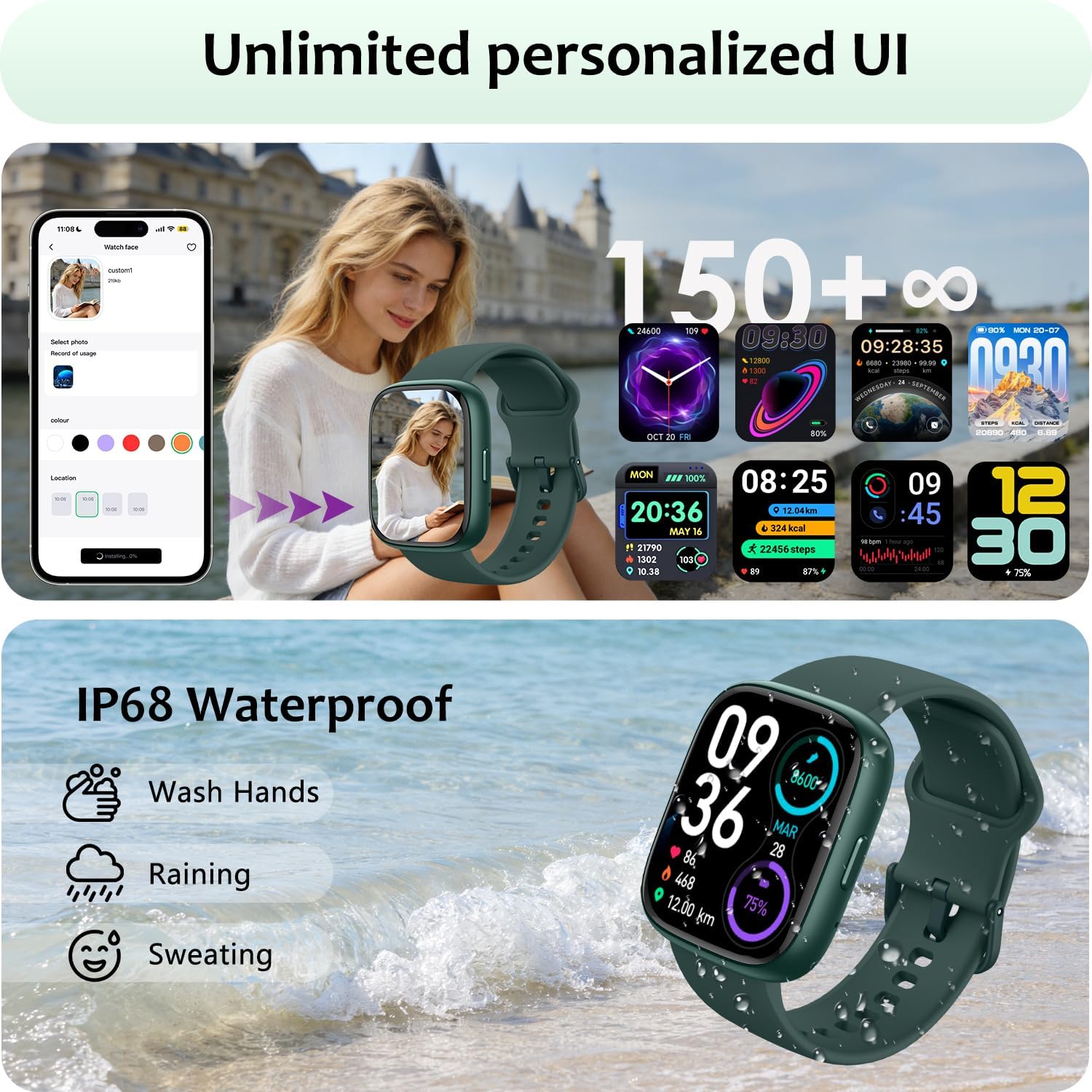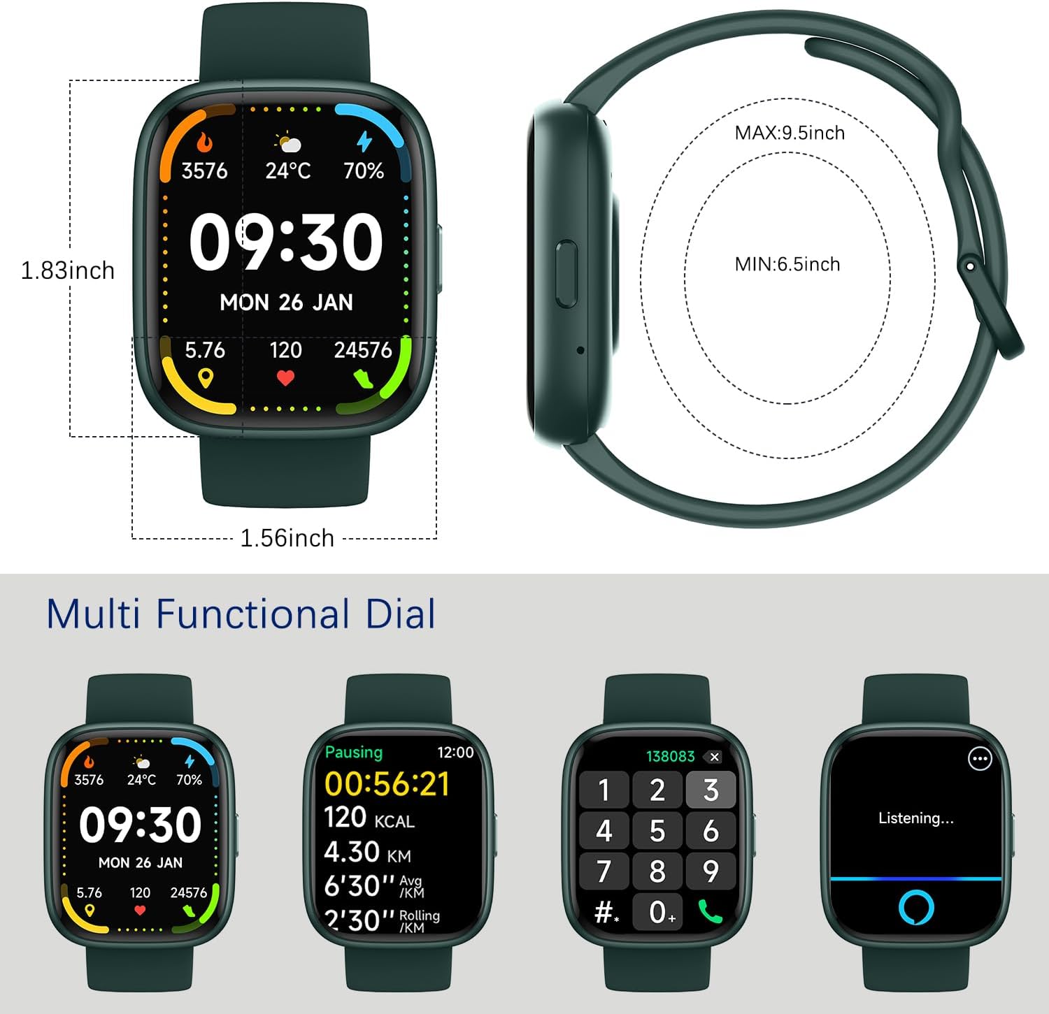 | Additional Features | Activity Tracker, Alarm Clock, Time Display, Touchscreen, Weather Forecast |