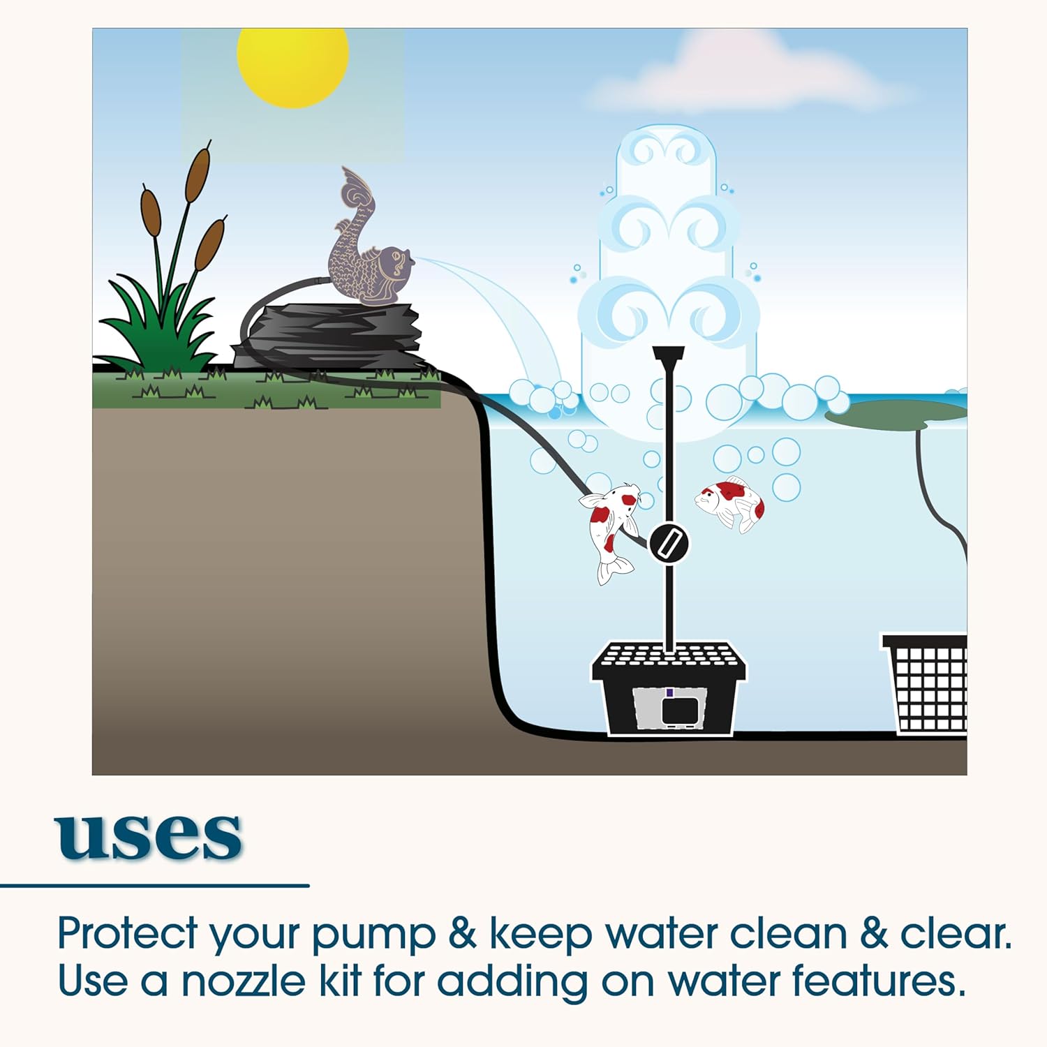 Perfect for use as a filtration system in ponds up to 500 gallons or additional filtration and pump protection in ponds over 500 gallons.