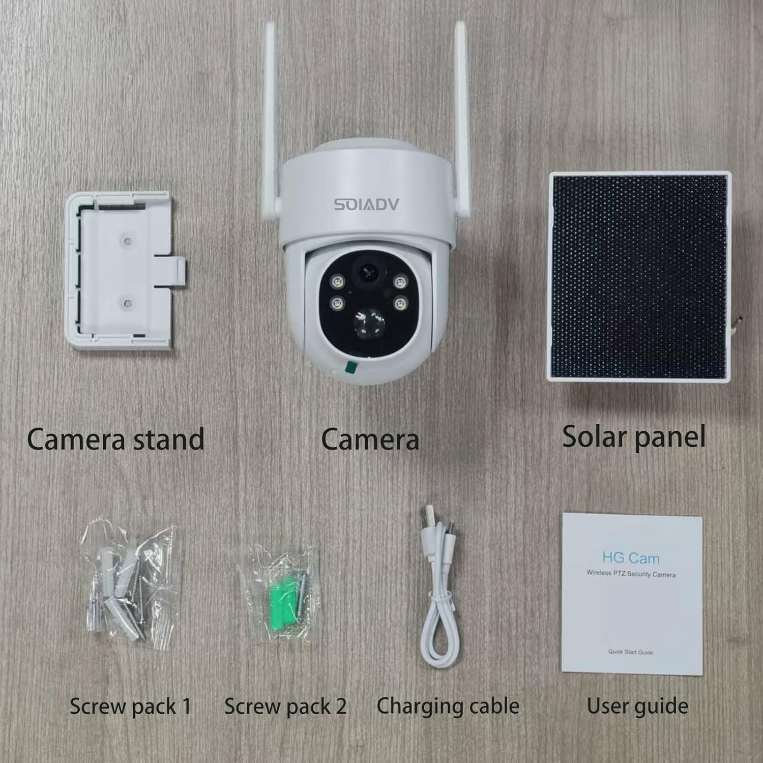 SOIADV Solar Security Camera Outdoor, 4MP 2K Video WiFi6 Dual Band 2.4/5GHz, 360° View PTZ Battery Powered Camera with Color Night Vision, AI Motion Detection, 2-Way Audio, IP65 Waterproof