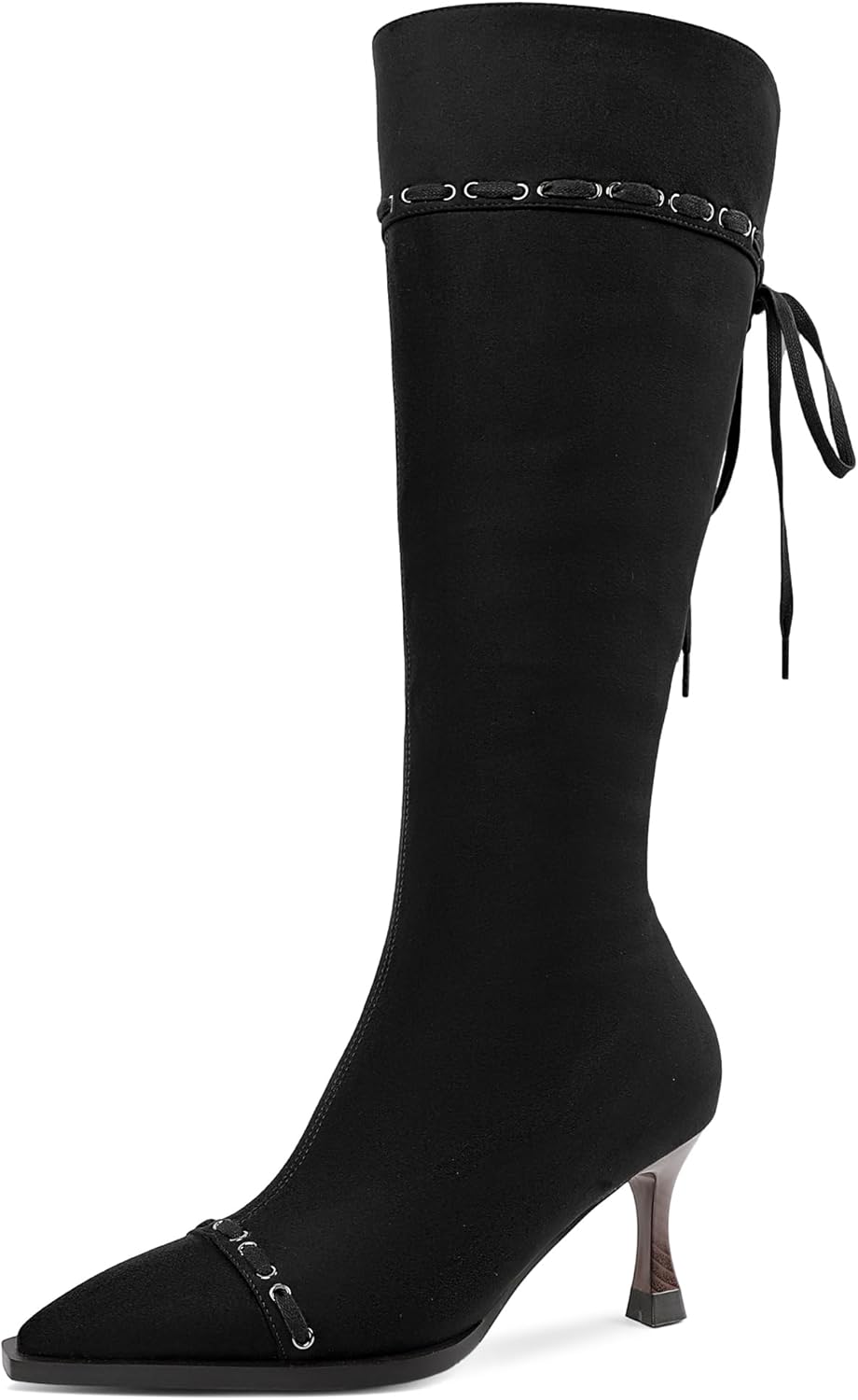 ★Soireelady Womens Knee High Boots Kitten Low Heel Pointed Toe Side Zipper Fall Long Tall Boots for Women 3 Inches (゚ω゚)ノ☆Heel Height: 3 Inches/7 CM. (゚ω゚)ノ☆Heel Type: Stiletto Heel/ kitten Heel (゚ω゚)ノ☆Toe Type: Pointed Toe/ Closed Toe. (゚ω゚)ノ☆Material: Suede material. (゚ω゚)ノ☆Lightweight and sturdy these classic knee high boots kitten low heel boots with side zipper make you easy to put on and take off. (゚ω゚)ノ☆A sturdy rubber outsole follow the natural curves of the foot and soft padded sole gives these knee high booties a relaxed fit with a refined look. You can wear these kitten heel boots low heel walk comfortably all day. (゚ω゚)ノ☆Match Tips: Party/ Date/ Wedding/ Work/ Travel/ Office work/ Professional/ Performance/ Graduation. (゚ω゚)ノ☆Closed Toe Desgin: This kitten low heel tall boots, with a heel of 7cm/5 Inches, the low and kitten heel style means you never have to worry about being outdated. (゚ω゚)ノ☆After Service: We have a professional team that know about boots, shipping and how you get your ideal dress shoes. We promise careful packing and we use good workmanship and apply strict examination to ensure the shoes you receive will be stylish and high-quality.