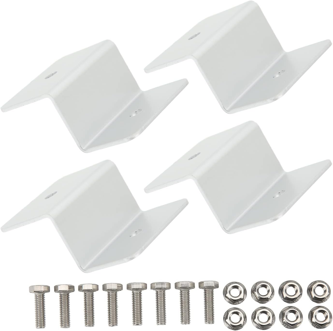 [Z TYPE BRACKET]: Solar panel bracket set with Z-shaped structure design, stable and reliable, compatible with any photovoltaic module specification. [MAIN PURPOSE]: WIDELY USED IN INSTALLATION OF SOLAR POWER FLAT CEMENT CEMENT ROOF FOR RV, Yachts, ALSO SUITABLE FOR SAFETY LIGHTING BACKUP. [ALUMINUM ALLOY]: LIGHTWEIGHT AND - SOLAR PANEL BRACKETS MADE OF ALUMINUM ALUMINUM ALLOY WITH GOOD HEAT DISSIPATION PROPERTIES. [EASY TO INSTALL]: EQUIPPED WITH SCREWS AND BOTS, THESE Z TYPE BRACKETS MAKE INSTALLATION SIMPLE AND CAN SUPPORT SMALL SQUARE POWER COMPONENTS UP TO 100W. [4 BRACKETS]: Includes 4 pieces of aluminum alloy solar panel mounts with standard mounting holes, provides stable mounting structure and strong practicality. Specification: Item Type: Solar Panel Brackets Material: aluminium alloy. Package List: 4 x Brackets 8 x Screws 8 x Bolts Note: