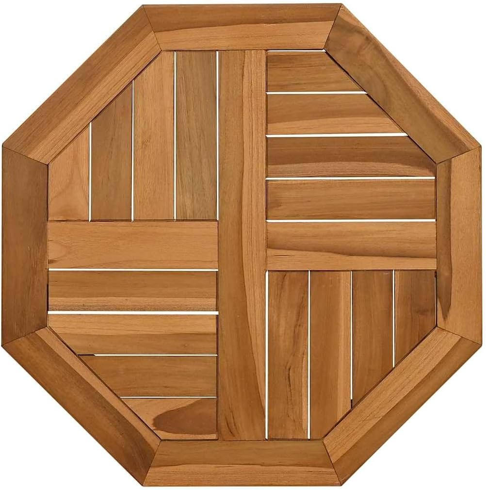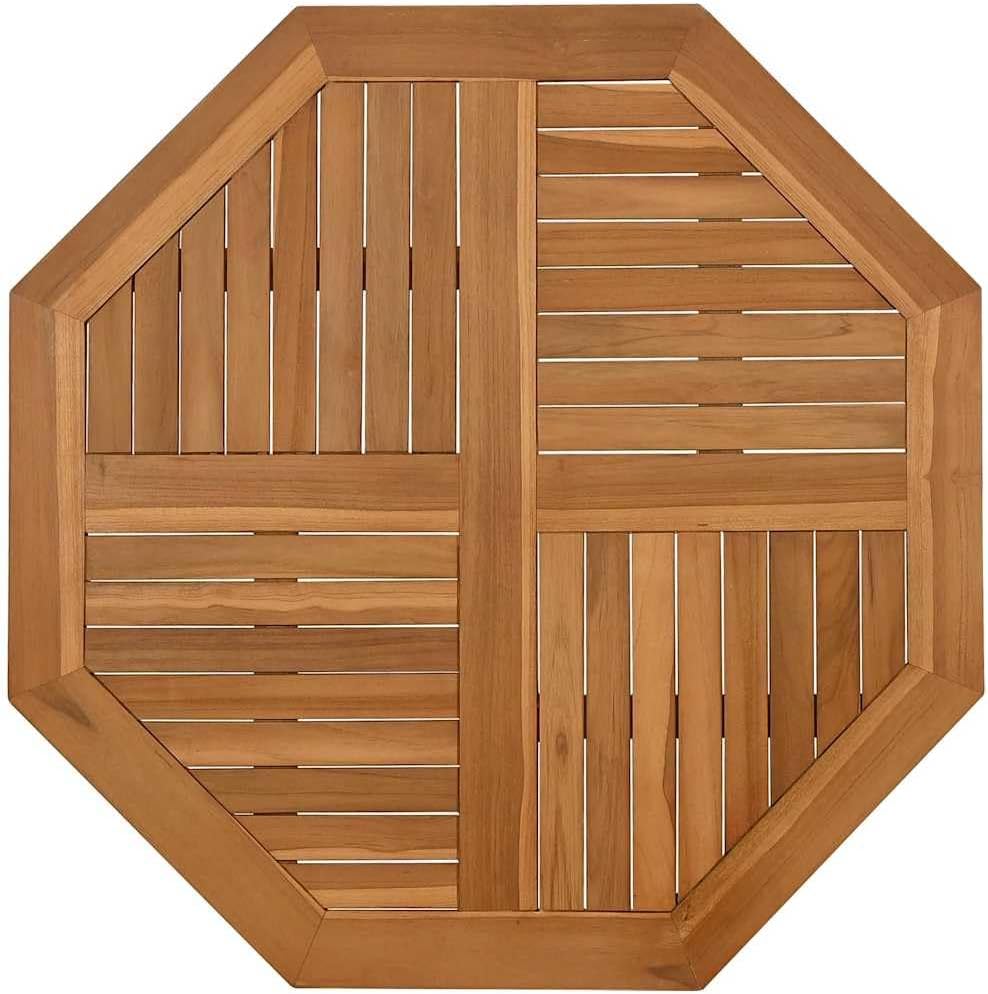 This octagonal solid teak table top is the perfect upgrade for your outdoor dining areas, offering rustic charm that fits in gardens and patios. With its smooth finish and practical design, it’s not just a solid dining surface; it also boosts the look of your outdoor space, making it a great spot for memorable get-togethers with family and friends, whether it’s sunny or starry.Rustic Appearance: The natural teak wood color and smooth texture provide a lovely rustic look that fits stylishly in any outdoor setting.Durable Material: Made from solid teak wood, this table top is built to handle various weather, keeping it good for years.Functional Parasol Hole: The built-in parasol hole makes it easy to pop on an umbrella for shade during sunny days, improving your dining comfort.Practical Size: With 27.6 in on each side and 1.0 in thick, this tabletop fits just right with most outdoor dining furniture.Easy Maintenance: Just wipe it down with a damp cloth to keep things pristine, avoiding harsh chemicals that could ruin the finish. Color: BrownShape: OctagonalMaterial: Solid Teak woodFinish: OiledIndoor/Outdoor: Indoor/OutdoorCover Included: NoRoom: Dining RoomCapacity: Single tabletopDimensions: 27.6 x 27.6 x 1.0 in (W x L x H)Surface Height: 1.0 inWeight: 9.15 lbsDelivery Contains: One table topAssembly Required: No