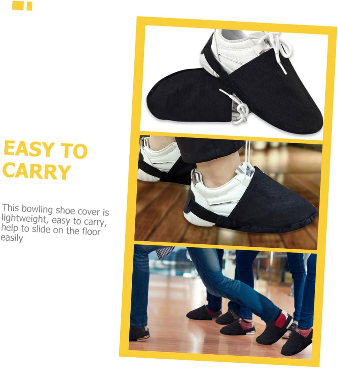 Package Include 3 x pair of bowling shoe covers Characteristics - Size: 18.00X16.00X5.50cm/7.07X6.29X2 kids bowling shoes. - Color: Black bowling shoe slide protector - Material: Fabric slider shoe cover - Easy to use, can be stretched with the elastic band design, convenient and practical slider cover for bowling. - By reducing the friction between the floor and your shoe sole, you can practice the bowling better mens bowling shoes. - Non-deformation, wear resistance and aging resistance for reliability bowling sliding shoe cover. - The design is anti-slip, unique, light and flexible, convenient and practical, it will be your giant bowling. - This bowling shoe protector is space-saving, you carry it around easily with the convenience sport accessories.Goods Informationkids bowling shoes This is a half foot design shoe covers designed for the bowling sports, you can use this shoe cover because it can help you to slide easier on the floor, reducing the friction between the floor and your shoe sole