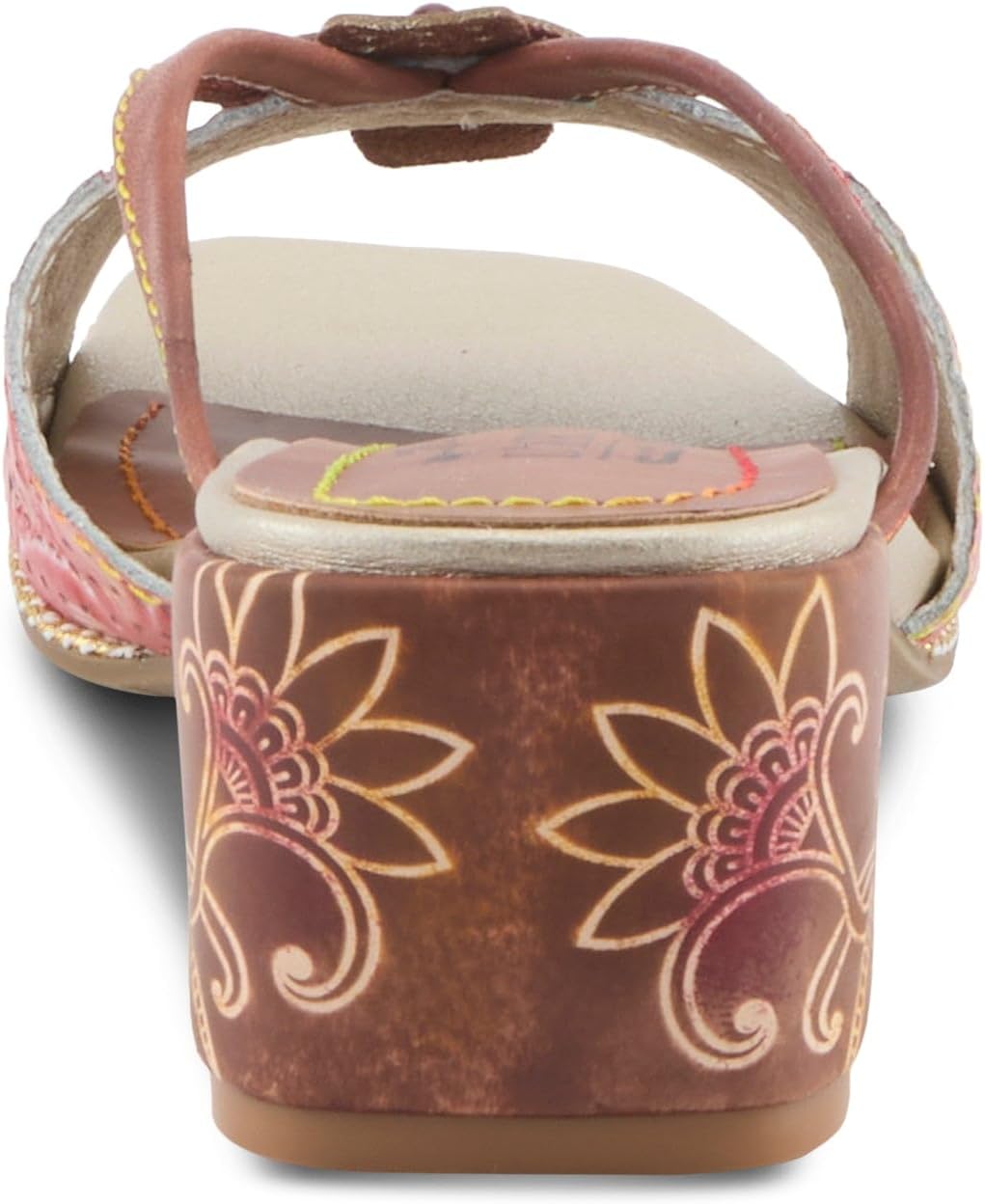 Discover elegant craftsmanship with L`Artiste Europa women's leather sandals, merging artistry and comfort. The genuine leather upper is beautifully embossed with a rich floral design that adds intricate texture and opulence. A layered 3D flower applique graces the front, bringing a playful yet sophisticated touch to this artisan sandal. Signature rainbow stitching along the cushioned insole underlines the attention to detail in every pair, ensuring each is uniquely L`Artiste. The low 2" block heel, also embossed with floral motifs, offers both stability and an effortless lift for versatile wear. From casual daytime strolls to stylish evening gatherings, these sandals bring European-inspired charm and premium comfort to any wardrobe.