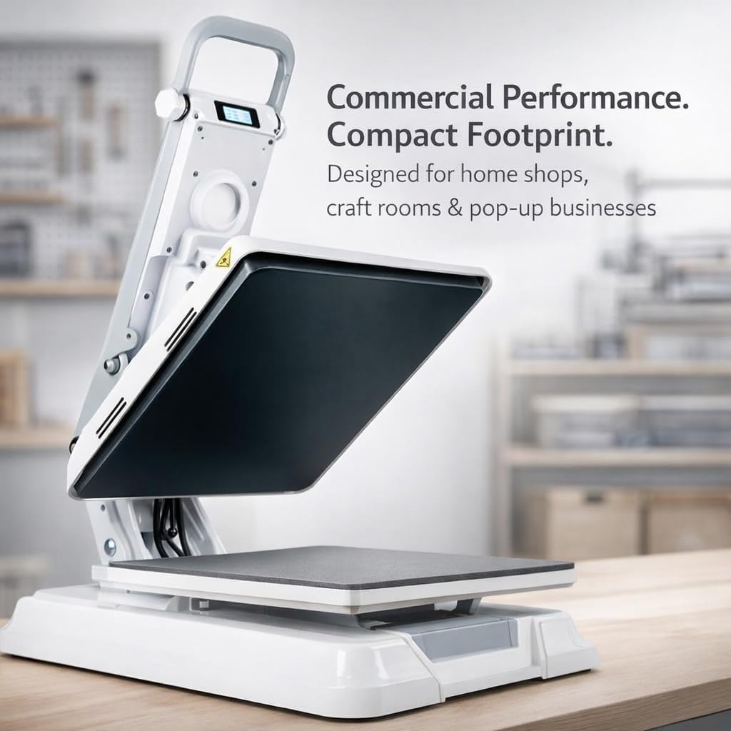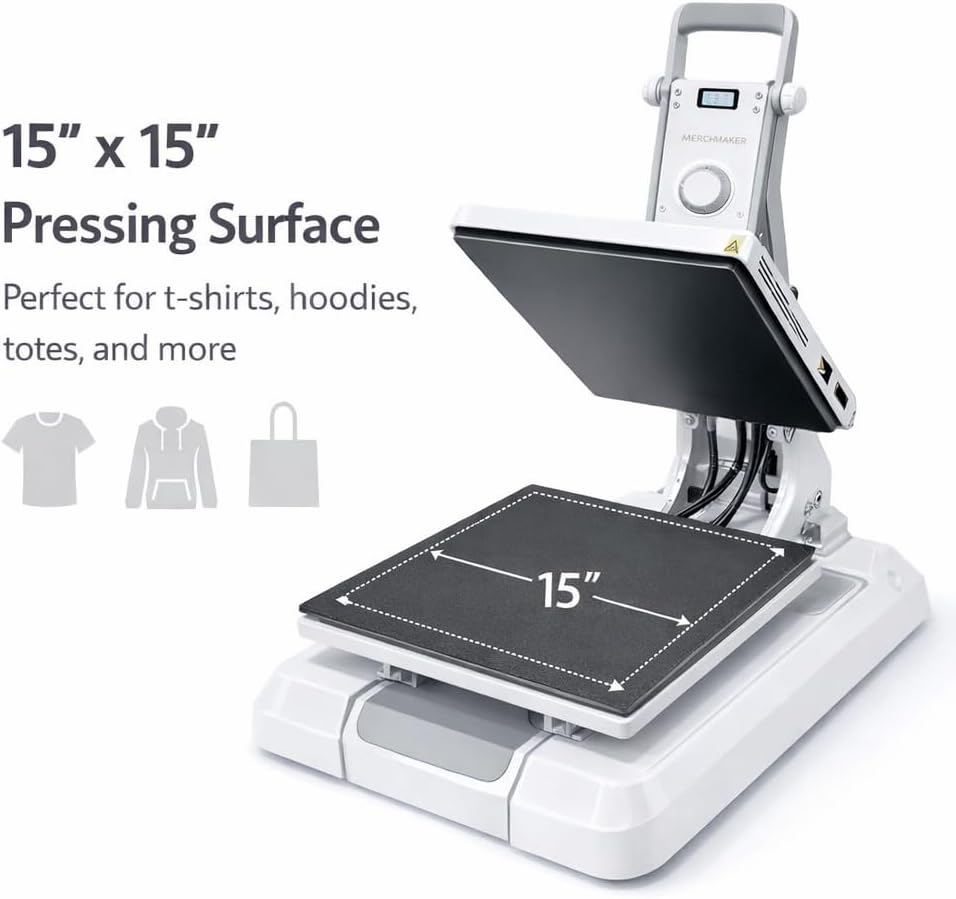 The Stahls MerchMaker Heat Press 15” x 15” is a compact yet powerful heat press designed to bring professional-grade results to DIY creators, crafters, and small business owners. Featuring a spacious 15” x 15” heated platen, this press delivers even heat distribution for clean, long-lasting transfers. The easy-to-read LCD digital display allows you to precisely control temperature, time, and pressure, ensuring consistent results across every project. Its portable, space-saving design makes it ideal for home workshops, classrooms, craft rooms, or small retail spaces—without compromising on performance. Whether you’re creating custom t-shirts, hoodies, tote bags, or promotional apparel, the MerchMaker Heat Press provides the reliability and control you need to grow your creative projects or business. Backed by Stahls’ industry-trusted reputation, this heat press is built to help makers press with confidence.