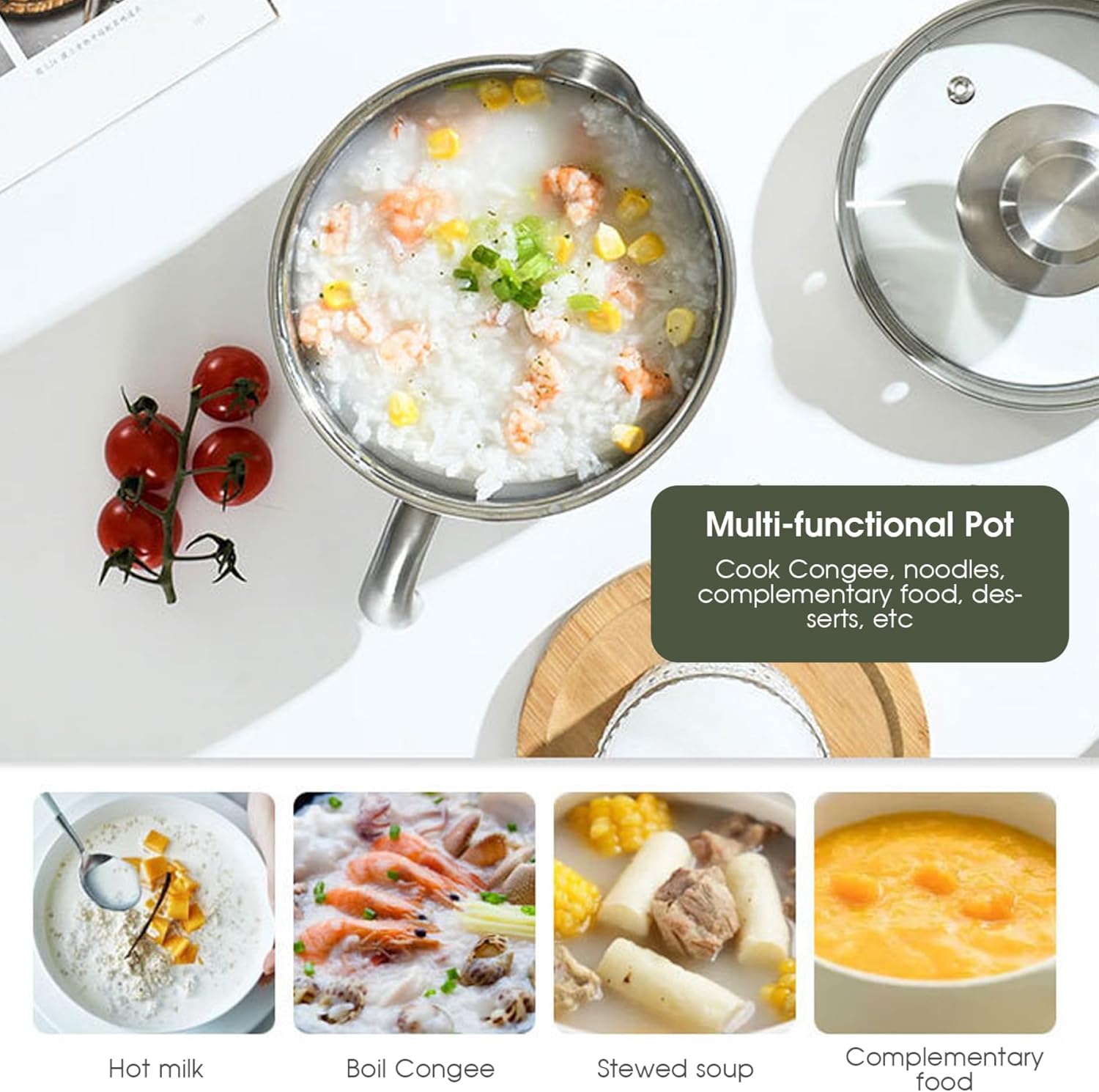 Description: This Stainless Steel Saucepan 2L Milk Pot is an essential addition to any kitchen, designed for versatility and performance. Made from premium stainless steel, it makes excellent heat distribution and durability for boiling milk, cooking sauces, gravies, pasta, and noodles with consistent results. The innovative pour spout ensures seamless, mess-free pouring, making it ideal for precise cooking tasks. Featuring a tempered glass lid, it retains heat and efficiently, while allowing you to keep an eye on your food without loss of temperature. Its ergonomic handle provides a secure, heat-resistant grip for safe handling, enhancing user comfort and kitchen safety. This milk pot's compact 2L capacity is perfectly suited for small to medium meal preparations, providing convenience and functionality for everyday use. Whether you are preparing a quick sauce or warming milk, this saucepan meets the demands of busy home cooks and enhances culinary experience through its thoughtful design, durability, and ease of maintenance. Features:. -Color: Silver. -Material: Stainless steel. -Size: 16x20 cm/6.30x7.87 inch. -Capacity: 2000ml. Note:Manual measurement, please allow slight errors on size.The colors may exist slight difference due to different screens. Package Including 1 * Milk Pot