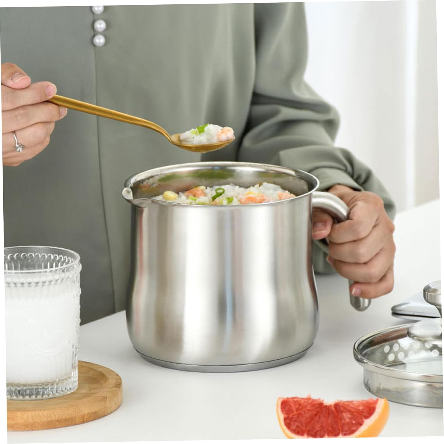 Description: This Stainless Steel Saucepan 2L Milk Pot is an essential addition to any kitchen, designed for versatility and performance. Made from premium stainless steel, it makes excellent heat distribution and durability for boiling milk, cooking sauces, gravies, pasta, and noodles with consistent results. The innovative pour spout ensures seamless, mess-free pouring, making it ideal for precise cooking tasks. Featuring a tempered glass lid, it retains heat and efficiently, while allowing you to keep an eye on your food without loss of temperature. Its ergonomic handle provides a secure, heat-resistant grip for safe handling, enhancing user comfort and kitchen safety. This milk pot's compact 2L capacity is perfectly suited for small to medium meal preparations, providing convenience and functionality for everyday use. Whether you are preparing a quick sauce or warming milk, this saucepan meets the demands of busy home cooks and enhances culinary experience through its thoughtful design, durability, and ease of maintenance. Features:. -Color: Silver. -Material: Stainless steel. -Size: 16x20 cm/6.30x7.87 inch. -Capacity: 2000ml. Note:Manual measurement, please allow slight errors on size.The colors may exist slight difference due to different screens. Package Including 1 * Milk Pot