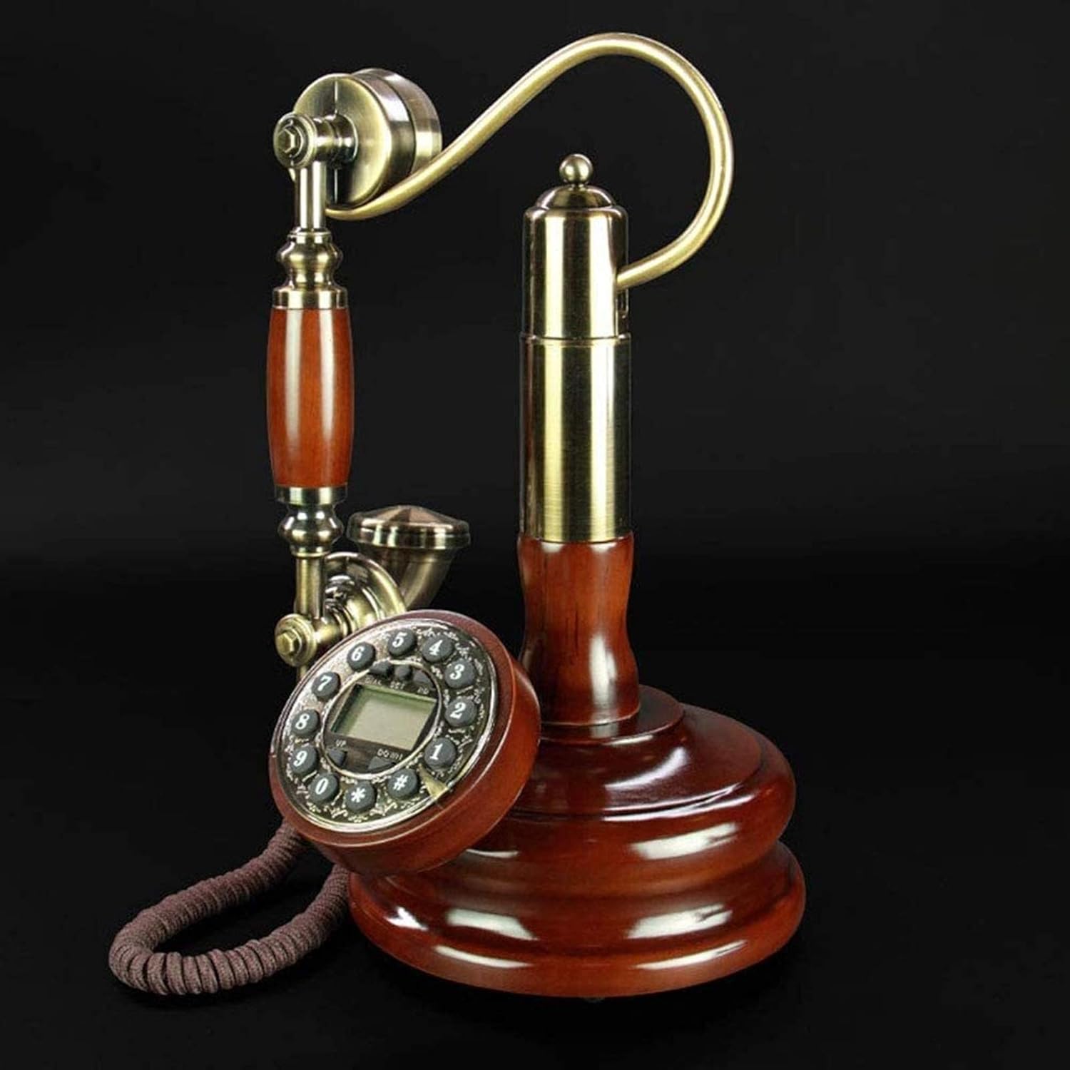 The classic design adds a stylish retro look and feel to any home or business. Product parameters: Name: Retro telephone Material: ABS + solid wood + silicone button Ringtones: Antique mechanical ringtones LCD display: white backlight Features: 1. No external power supply is required, no tery is needed, and the LCD screen works directly with the current on the telephone line. 2. 1 set of automatic IP, each set of memory length (including the solidified IP access number) is 32 Bit. 3. Super lightning protection and -theft function. 4. Caller ID. 5. One-touch redial. 6. FSK and DTMF caller ID, automatic detection. 7. Dial the number to check the number/check the time. 8. Caller number check, quick check, callback. 9. The area code is filtered and the area code is 5 digits long. Package includes: 1 *Landline phone Note: 1. Allow 1-3cm error due to manual measurement. 2. Allows slight chromatic aberration due to different resolution of the display. If you have any questions after purchasing, please feel free to contact us and I will reply as soon as possible