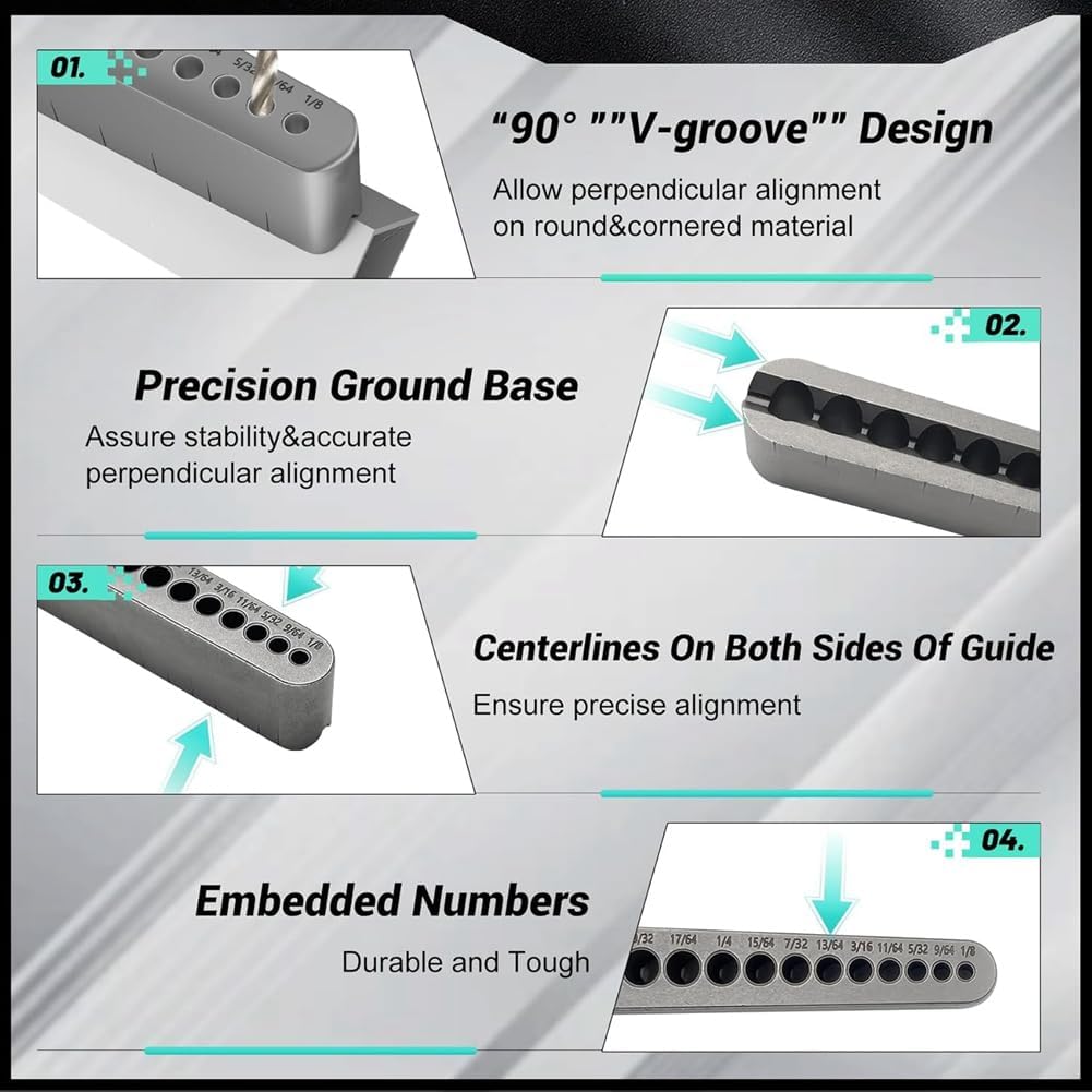 Wooswen Color:SilverMaterial:SteelPackage Contents:1 * Drill GuideOnly the above package content, other products are not included.Note: Light reflection and different displays may cause the color of the item in the picture a little different from the real thing. The measurement allowed error is +/- 1-3cm.