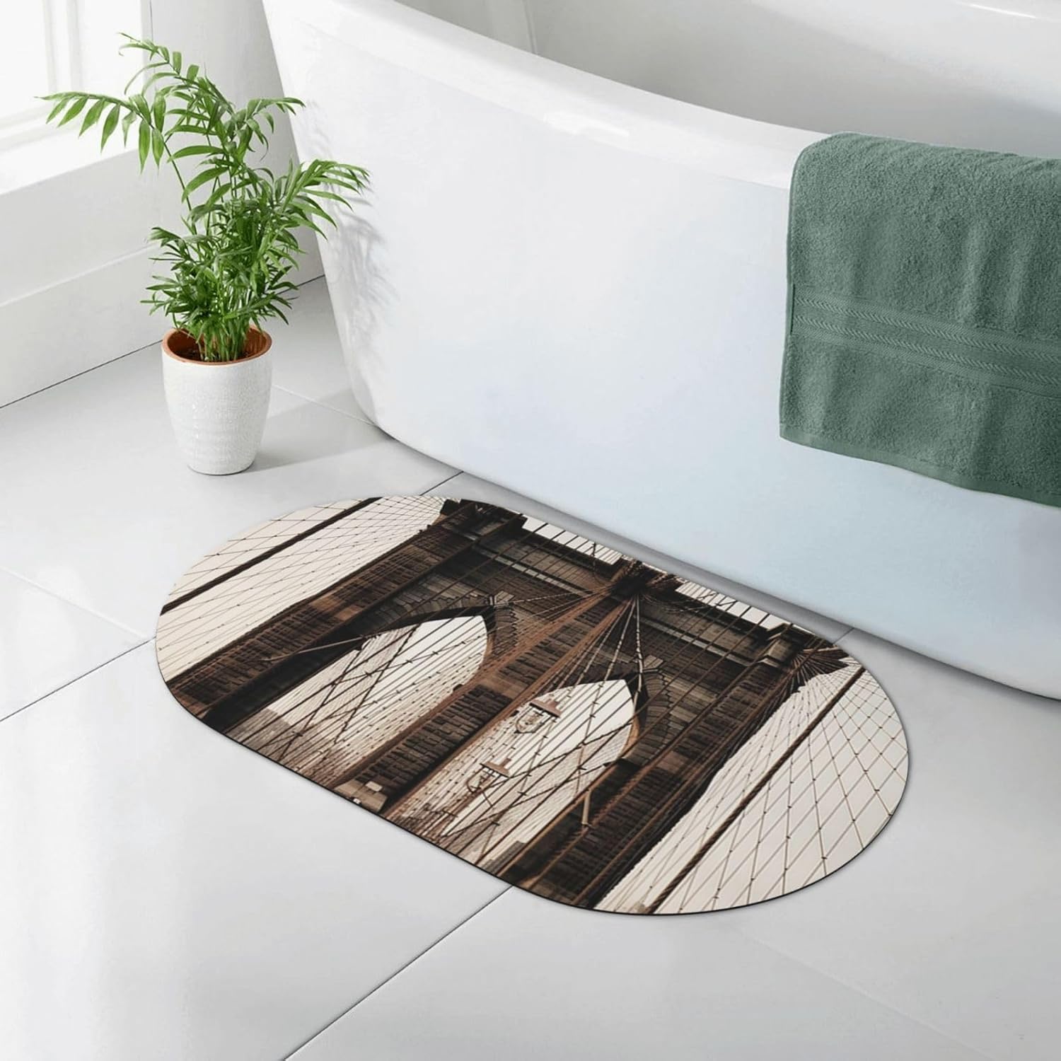 Bath Rug Crapet, Diatomaceous Earth Bath Mat, Super Absorbent Bath Mat, Quick Dry Non-Slip Washable Bath Rug, Bathroom Floor MatDiatomaceous Earth Bath Mat Photo of Brooklyn Bridge Bathtub Mat Fast Drying Non-slip Shower Mat Bath Stone Mat Super Absorbent Bathroom Floor Mat for Bathroom, Shower Floor, And Kitchen Counter Features:SIZE - 19.7 x 31.5inch, you can use it in any wet cleaning areaMATERIALS - Made of diatomite, safe and environmentally friendly.PREMIUM QUALITY - Long lasting, won't fade or wear out over time.HIGHLY ABSORBENT - Effectively absorb moisture, keep your floor tidy.NON-SLIP RUBBER BACKING - Hold on to your floor - no slipping or skiding.DIRT TRAPPER - No more dirty dog prints or messy footprints on the floor!ULTRA-ABSORBENT & HYGIENIC-BOOSTING - Enjoy your first steps to a drier, more hygienic bath experience. Our Stone Bath Mat naturally absorbs excess water the moment you step out of the shower, leaving your feet and bathroom clean and dry in minutes.NECESSITY FOR YOUR HOME - The floor mat is perfect for indoor or outdoor use, such as entryway, patio, bathroom, garage, hall or kitchen. The and wear-resistant welcome mat makes your home cozier while keeping floors clean.EASY TO CLEAN - Daily cleaning of the diatomaceous earth bath stone mat is simple, just rinse with water or wipe with a damp cloth; stubborn stains can be used with sandpaper and will be as good as new after a few minutes of drying. It must be placed on a solid and flat surface, and cannot be used on uneven ground or soft ground.New version soft diatomaceous earth bath mat offer you soft touch support for your feet with comfy suede aginst for cold floor. nano diatomite interlayer absorbs moisture instantly. Not only WITHOUT emitting toxic and harmful chemicals to the human body,but also improves the living environment.