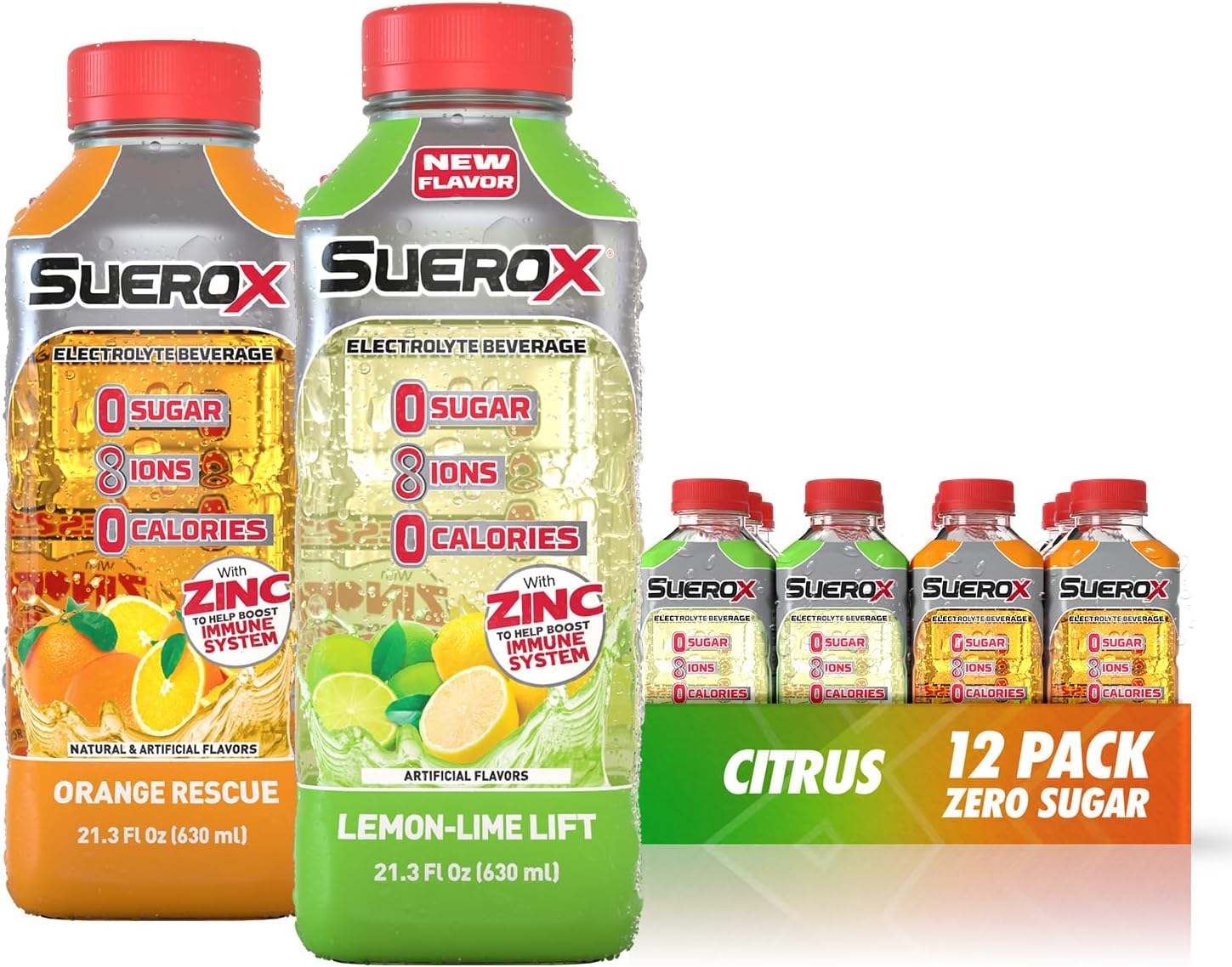 SueroX is your everyday sugar-free hydration solution, offering great taste without the guilt. It's the recovery drink that doesn’t taste like one. Packed with electrolytes, SueroX is designed to keep you hydrated throughout your day, no matter your lifestyle—whether it’s happy hour, soccer games, conference calls, or simply relaxing in the backyard with family and friends. Enjoy a juicy splash of tropical refreshment with Orange, Coconut, Grape, and Strawberry-Kiwi flavors. This hydration drink features zero sugar, zero calories, and a unique blend of 5 electrolytes, including Calcium, Potassium, Magnesium, and Chloride. It also contains zinc, which supports the immune system. Whether it’s a long day of meetings or a fun night out, SueroX helps you recover quickly and rehydrate to keep going. SueroX – Taste the power of rehydration.