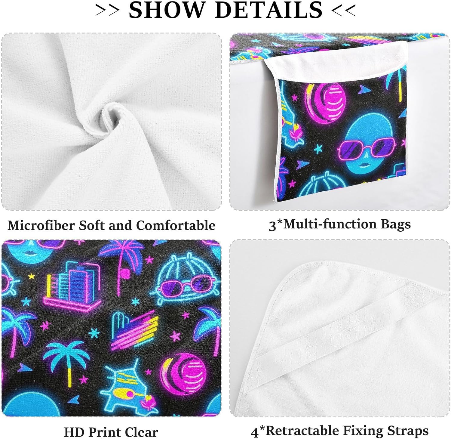 Specifications:Material: PolyesterSize: 30 x 85 inches/ 76.2 x 216 cmPackage includes: 1 x Beach Chair CoverNo Sliding: Deep 11'' pocket on the top and four corner expansion straps make sure your lounge chair cover to stay in place no matter how windy it gets. NO MORE SLIDING!Three Side Pockets: Features built-in storage pockets to keep your essentials organized and within easy reach while relaxing.Foldable Design: Our Patio Lounge Chair Covers are designed to be folded, so you can fold them into bags and carry them, very convenient. Lightweight construction makes it easy to carry and perfect for travel and outdoor activities.Easy to Care: These beach chair covers with pockets can be machine washed gently. Dry at a low temperature and take out of the dryer quickly to avoid wrinkles. Avoid bleach or soak in the water for a long time.Notes:Manual measurement, please allow slight errors on size.The color may exist a slight difference due to different screen displays.