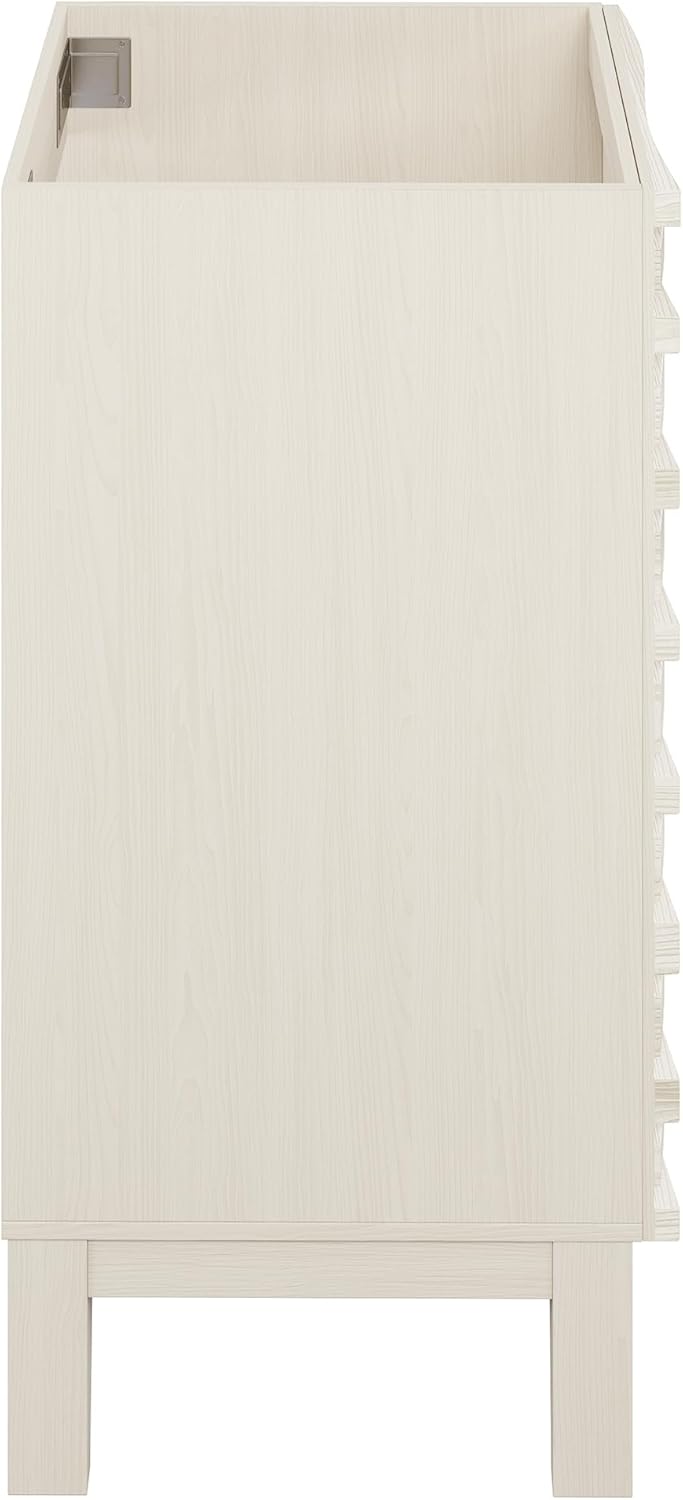 Immerse yourself in the gentle flow of design with the Cascade collection, where fluid lines and captivating forms create an atmosphere of tranquil beauty. Tailor your bathroom to perfection with our cabinets-only vanities, offering customizable vanity top solutions to integrate with your design vision. Offered in white oak.