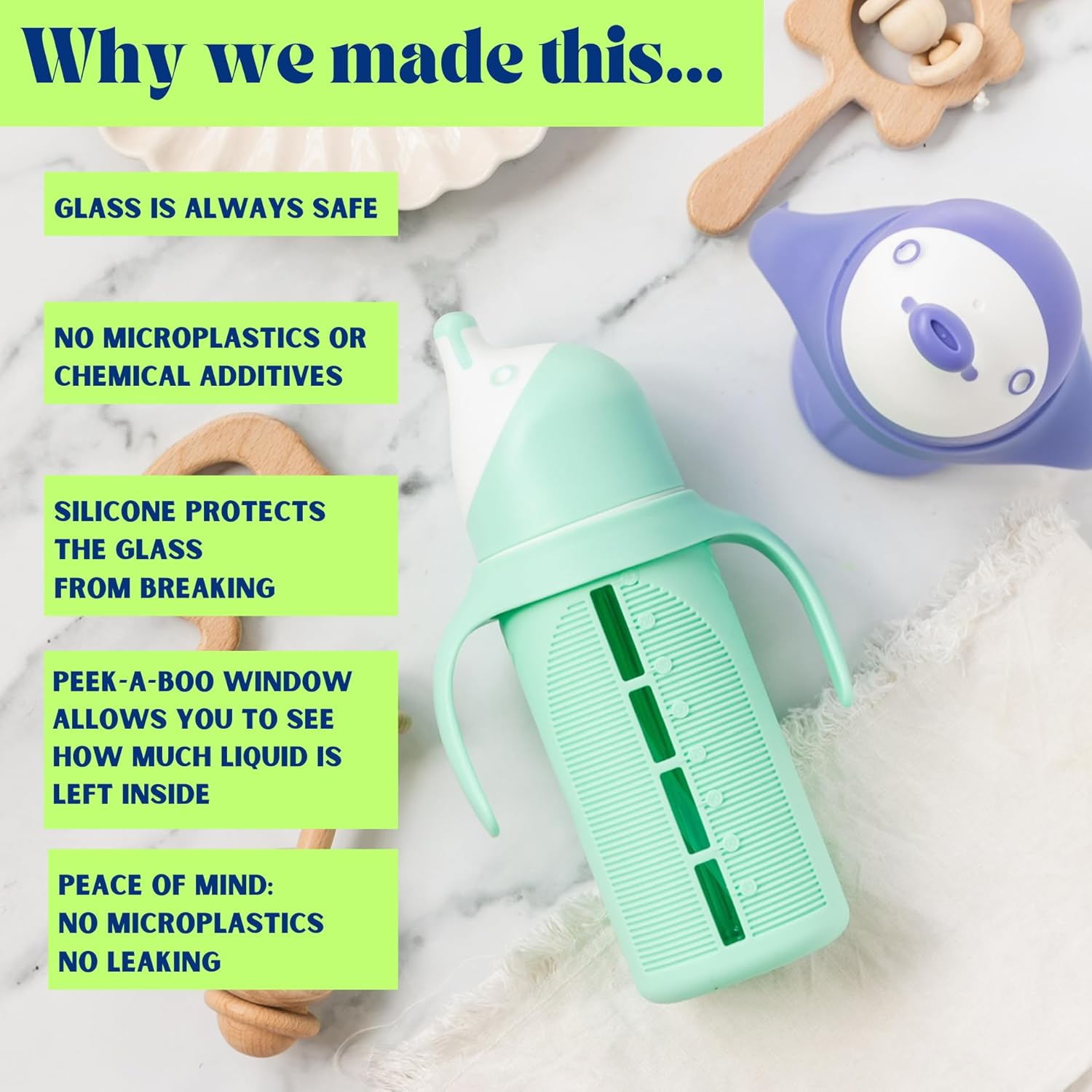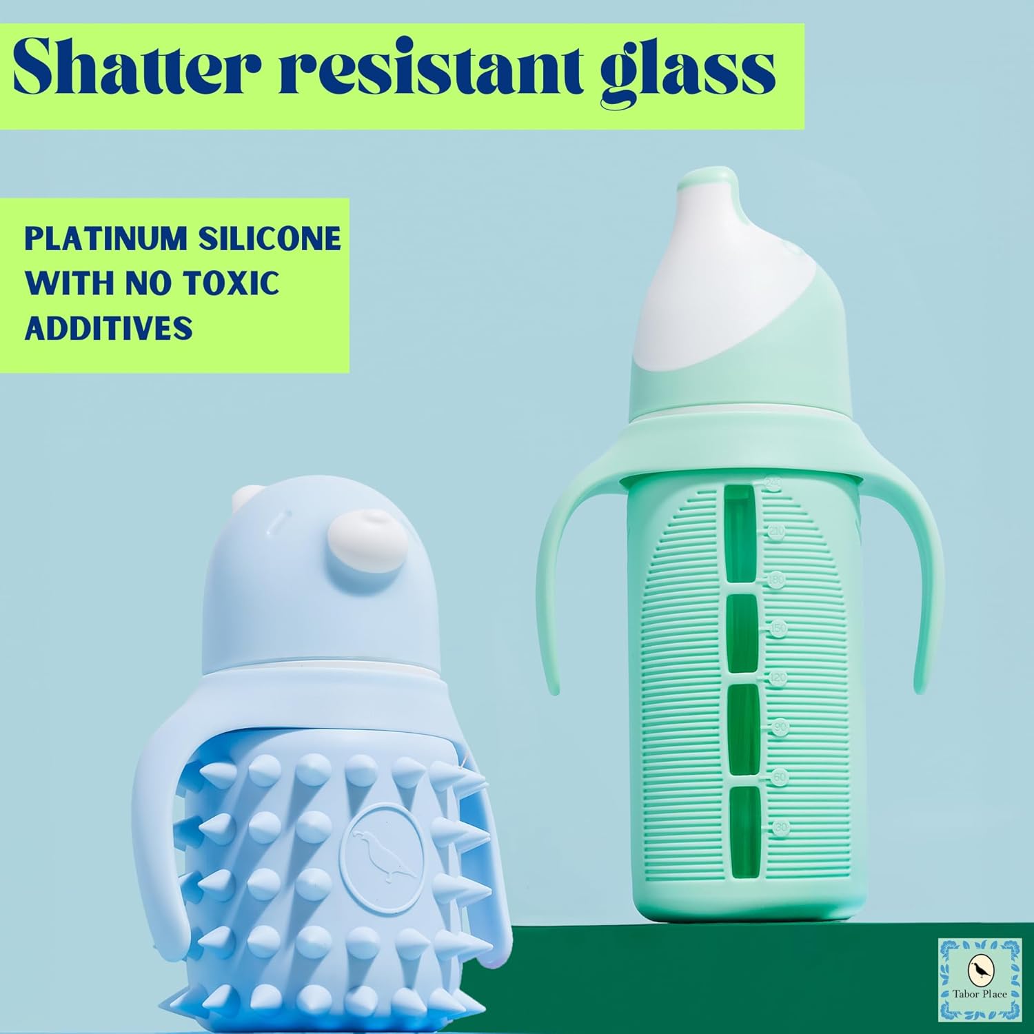 The Luca - Glass Sippy Cup with silicone straw - Designed by Tabor Place, in Greenwich, CT - founded by a millennial mom who just wanted a sippy cup that wasn't made out of plastic Our Sippy Cup is made with strong borosilicate glass (aka Pyrex) which means it's non-toxic, BPA / BPS and phalate free for your toddler! It was also designed to be practically SPILL PROOF - making this cup sleek, super durable & easy to use! The cup is surrounded by a shock-absorbing silicone shell which protects the glass - making it shatter resistant (tantrum tested!) "The Luca" by Tabor Place is the safest & most well designed sippy cup for your toddler on Amazon Drinking from plastic is never safe: even if a plastic cup is "BPA free" it has chemicals that cause the same toxic effects that the FDA banned years ago. "The Luca" is the only cup where liquids NEVER TOUCH PLASTIC and is also spill-proof and well-designed. Other cups that are made with stainless steel or borosilicate glass, still use plastic straws - meaning your toddler is still getting toxic chemicals in their liquids. This cup comes with a slanted silicone straw - meaning that the liquids inside the glass never come in touch with plastic. The silicone straw is sturdy, flexible and reaches all the way to the bottom of the cup - helping you get every last bit of liquid. Our glass is odor-resistant - not like stainless steel which gets smelly after using This cup is super easy to clean - all pieces come apart quickly. Dishwasher safe (top rack only) The snap-on lid makes the cup spill-resistant and is easy to take on and off. The base naturally grips - designed to help it from tipping over. The handles are easily removable, so you can take them on or off based on your toddler's preferences. This cup also fits easily into most cup holders - specifically on strollers & car seats.