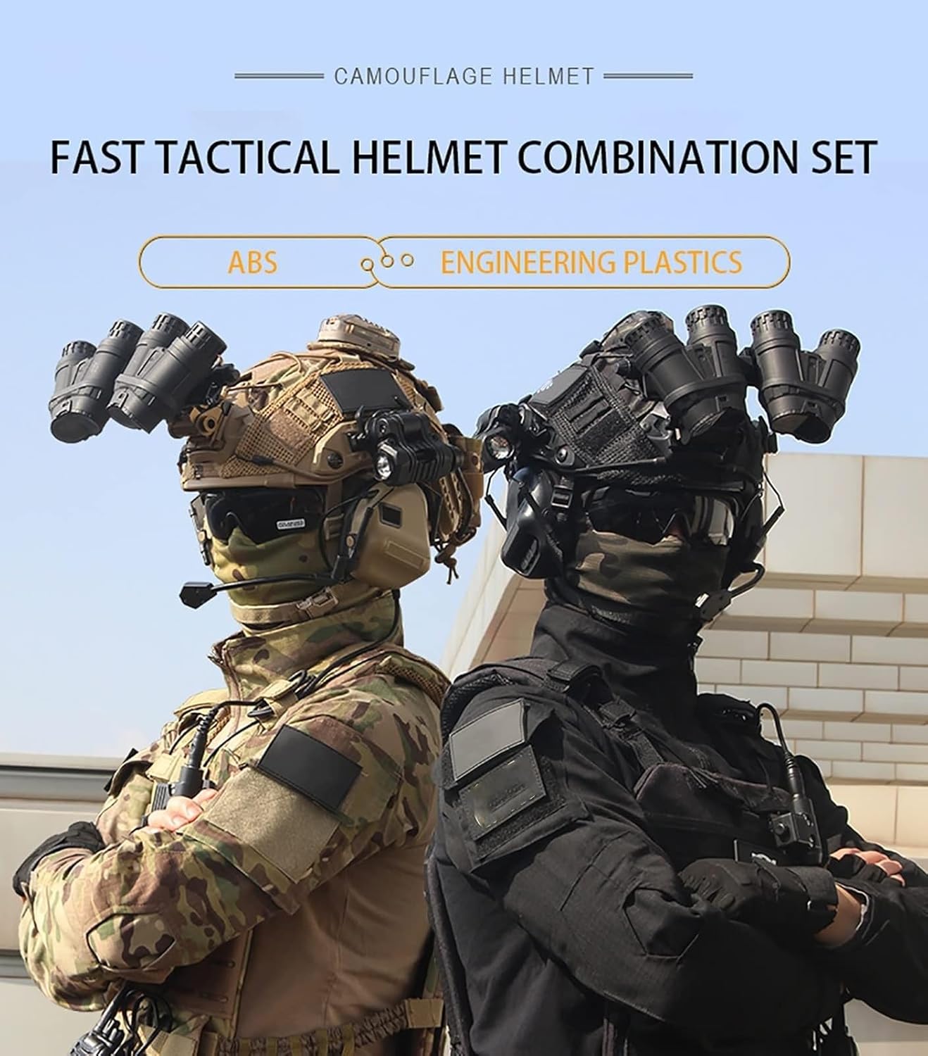 Are you an airsoft player?Are you going to play paintball with your friend?Who can say no to an all-in-one tactical gear set like this? This all-in-one golden combination tactical set includes a professional-grade FAST helmet, NVG mount, a cool non-functional NVG model, anti-jamming tactical headset, helmet cover, goggles, signal light, and flashlight, providing 360° all-around protection and ideal for outdoor activities such as CS, paintball, and cycling.>>> What You Get In The Box:1x Helmet1x Helmet cover1x goggles1x NVG model1x NVG mount1x Flashlight clip1x Flashlight1x Signal Indicator1x headsetAll Necessary Mounting HardwareStop settling for helmets that hold you back. Choose the one that’s built for your pain points, your mission, and your trust.We have a dedicated customer service and technical team to respond to your product inquiries and usage questions at any time, ensuring your equipment is always in optimal condition.