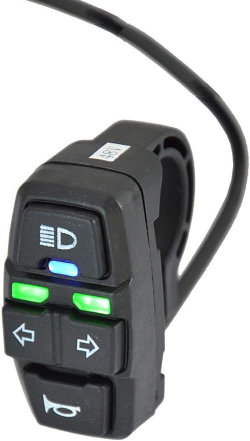 Description: Name: e-bike headlight set【Product name】Multifunctional tail light 【Function】Night running lights, brake lights, left and right turn lights 【Material】ABS+LED [Outlet] six-core wire 【Voltage】24V-48V 【Weight】124G Line length] about 1.5 meters[product name] horn + headlight + turn signal button integrated [Outlet] six-core wire 【Weight】83G [line length] about 1.7 meters[product name] car light horn two-in-one LED headlight [Outlet] three-core wire 【Weight】104G [line length] about 1.5 meters [Function] Headlights, horns 【Material】ABS+LED 【Material: Nylonhint: 1: This product is not suitable for Bafang or TSDZ mid-mounted motors. 2: This product needs to be connected to the same battery as the controller, otherwise the braking function cannot be activated. 3: Connecting to the brake requires the controller to be a low-speed brake.Packing list: 1 set (e-bike headlight +turn signal rear light +switch ) Note: Different displays may cause the color of the item in the picture a little different from the real thing. Manual measuring,please allow 1~3mm error,thank you.
