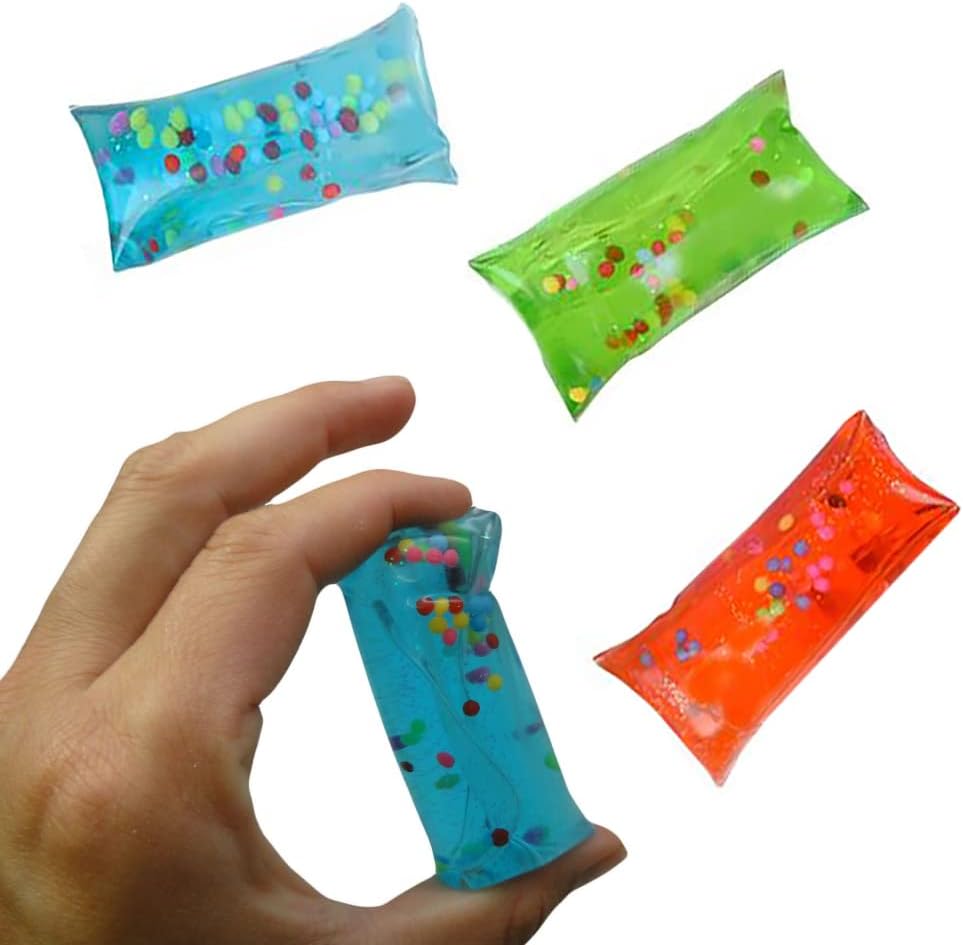 Mini Water Wiggler With Confetti, Sensory Toys for Kids, Prizes, Raffles, Party Favors, Assorted Colors, 2" Inches. Choose between our 2, 4, & 6 Pack Options.
