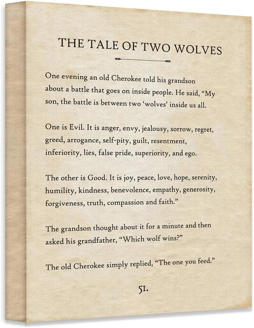 | Product Style | The Tale of Two Wolves Inspirational Cherokee Parable Quote Wall Art Print |
