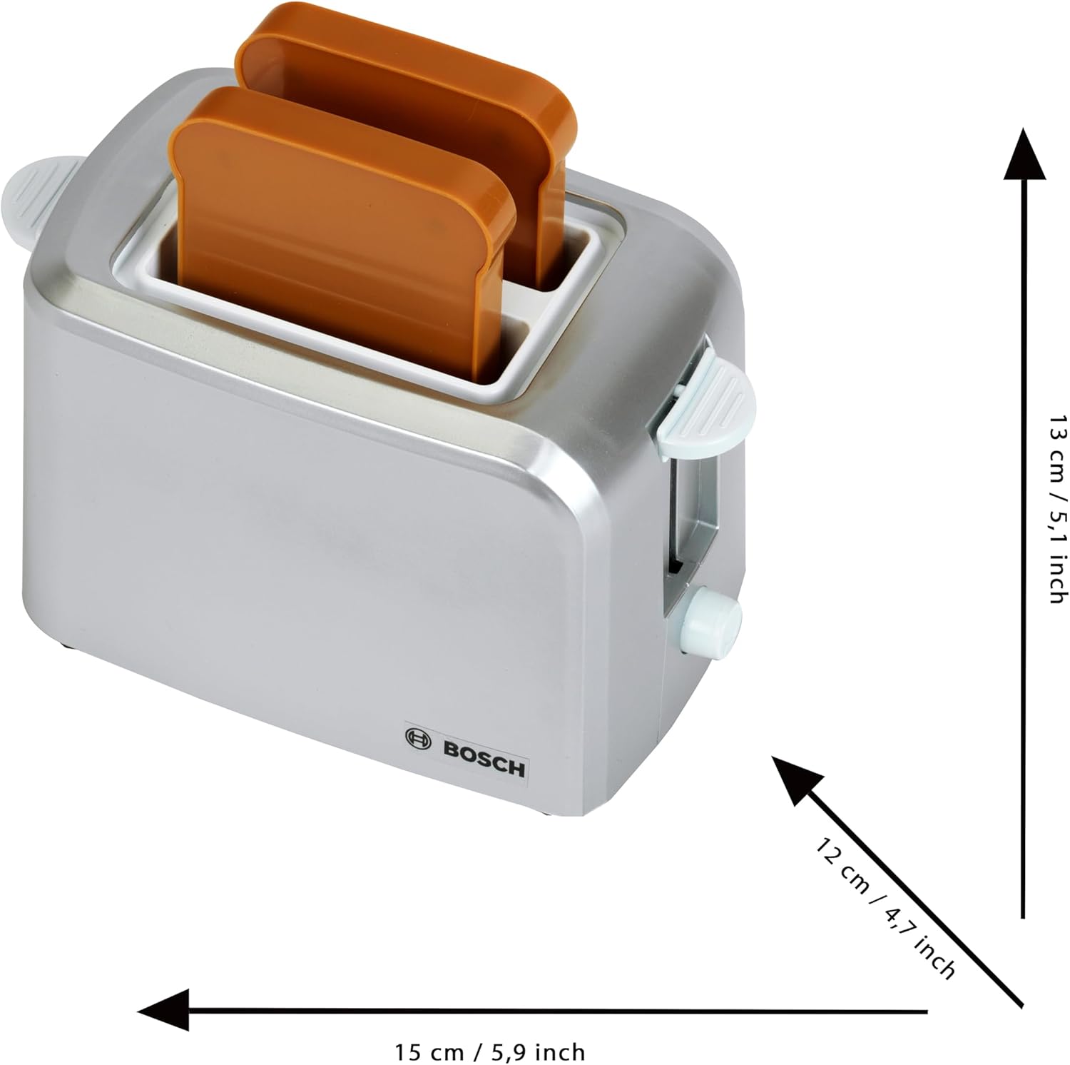 | Item Type Name | Bosch toaster with mechanical toast function, includes 2 slices of toy toast, dimensions: 15 cm x 12 cm x 10.5 cm, toy for children aged 3 and over |