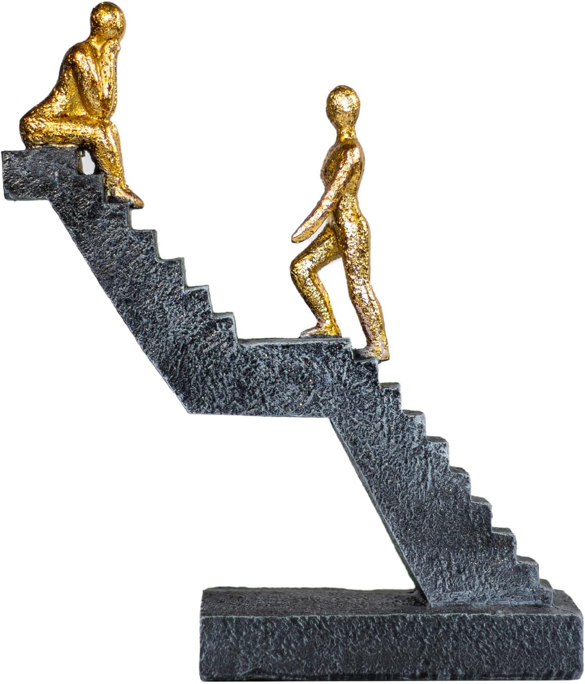 A golden figurine decoration inspired by 'The Thinker'. The overall height is 24 centimeters (9.45 inches), width is 12 centimeters (4.72 inches), and depth is 5 centimeters (1.97 inches). The statue sits on a black staircase, with a simple yet profound shape, symbolizing thinking and exploration. It is suitable for placement on bookshelves, desks, or living rooms, not only showcasing taste, but also adding artistic atmosphere. The golden appearance shines brightly in the light, making it an ideal choice for modern home decor and office decoration. Its unique design language makes this decoration a rare artistic treasure.