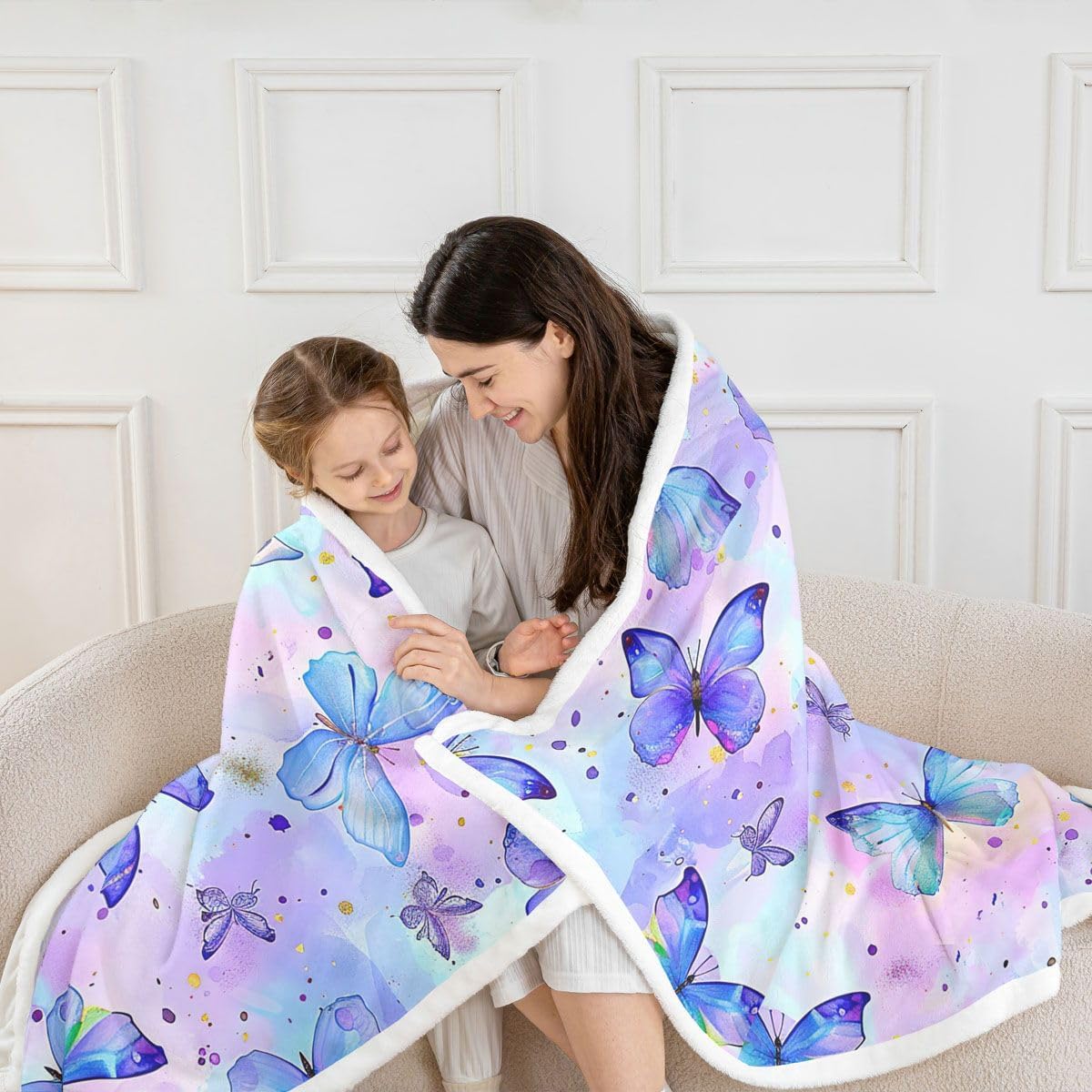 Tie Dye Butterfly Fleece Throw Blanket Kids Toddler Blue Purple Butterfly Sherpa Blanket Rainbow Glitter Butterfly Plush Blanket Flying Butterfly Fuzzy Blanket Twin 60"x80"