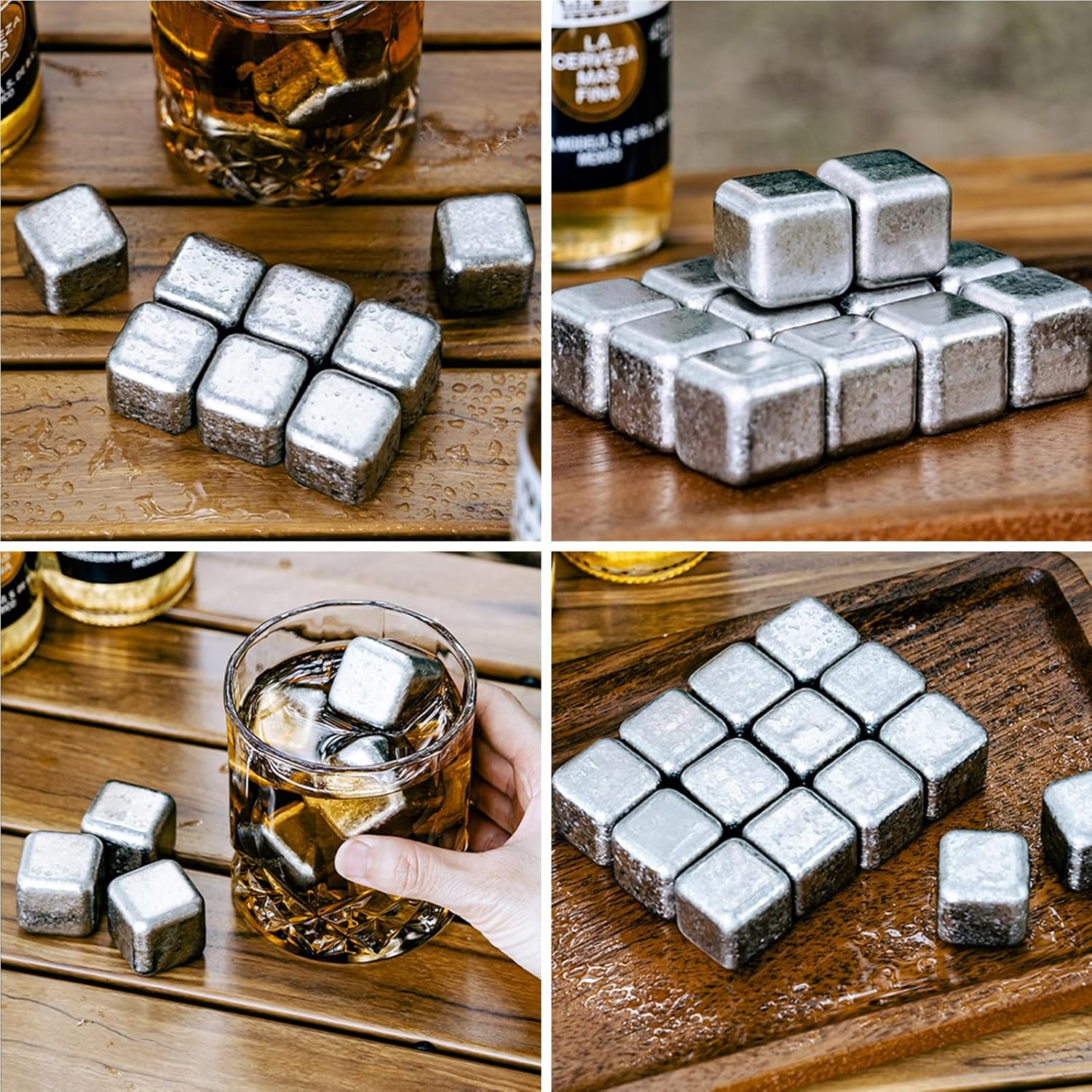 Elevate your drinking experience with these premium titanium ice cubes that keep your beverages perfectly chilled without diluting their flavor. This set of 6 sleek, silver-finished cubes offers a sophisticated alternative to traditional ice, making them ideal for whiskey, wine, cocktails, and other fine spirits. The durable titanium construction ensures these cooling cubes maintain their temperature longer than regular ice, while their smooth, cube shape adds a modern aesthetic to your drinkware. Simply freeze and reuse these innovative drink accessories for countless servings. The non-diluting nature preserves the pure taste of your beverage, allowing you to savor every sip at the perfect temperature. Each cube features a precision-engineered design that's easy to clean and store. These whiskey stones make an impressive addition to any home bar and are perfect for entertaining or enjoying a solitary nightcap. Remember to rinse before first use and between uses to maintain their pristine condition.