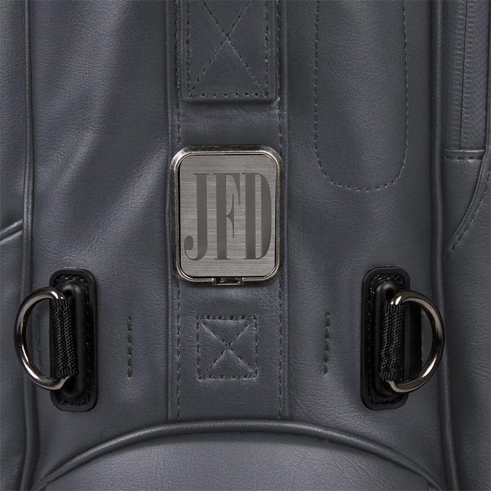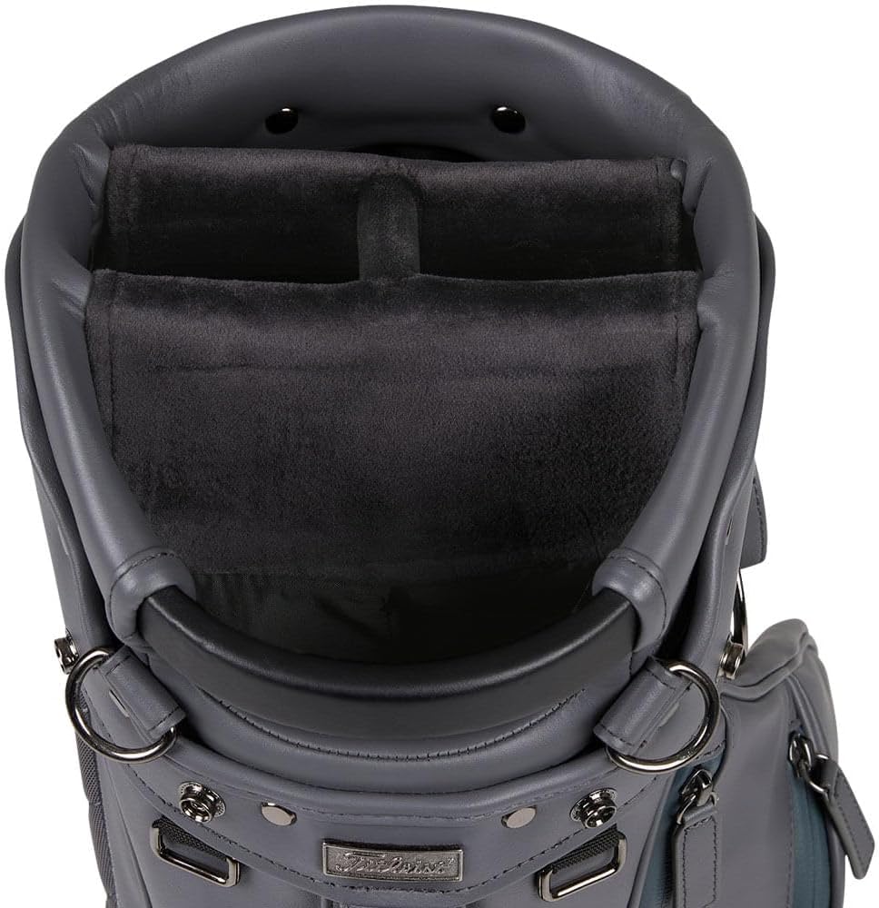 The Titleist LinksLegend Members Stand Bag, featuring a premium finish, offers superior organization, ample capacity, and unparalleled style. It combines modern conveniences with a timeless look, providing an outstanding carry experience. Golfers will appreciate the premium double strap, reconfigured pockets, and the new top cuff with an integrated handle.